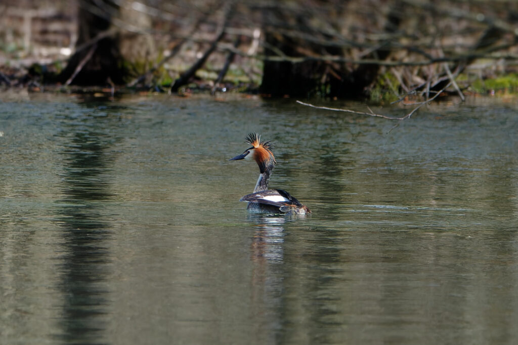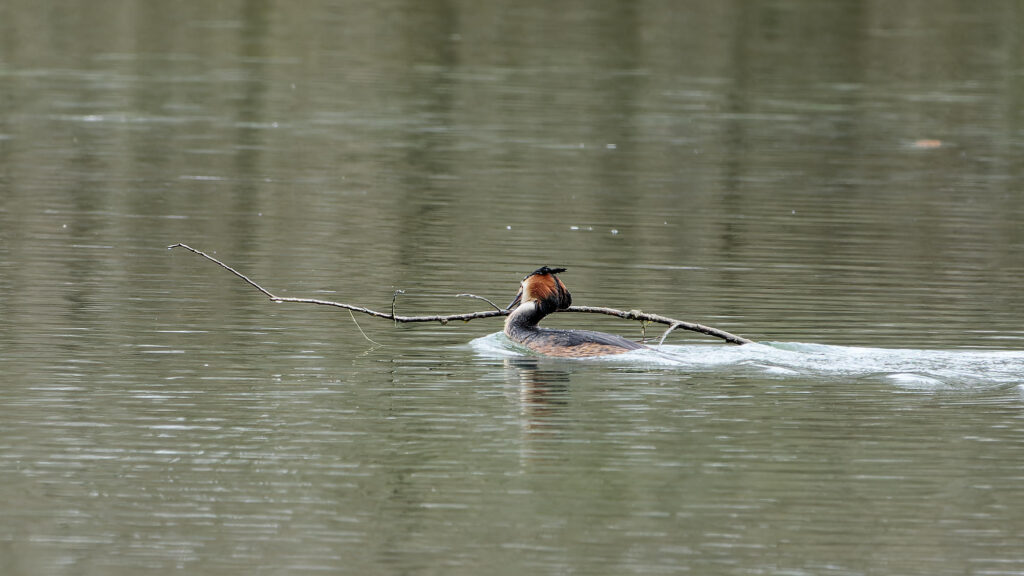 Le printemps est une période chargée pour les grèbes. Comme l’an dernier, deux nids sont en construction sur l’étang, mais celui-ci n’est occupé que par un grèbe célibataire. La huppe déployée, il semble toujours à la recherche d’un colocataire pour […]