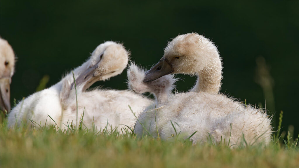 Toujours couverts de duvet, ils agitent leurs ailes encore en devenir.