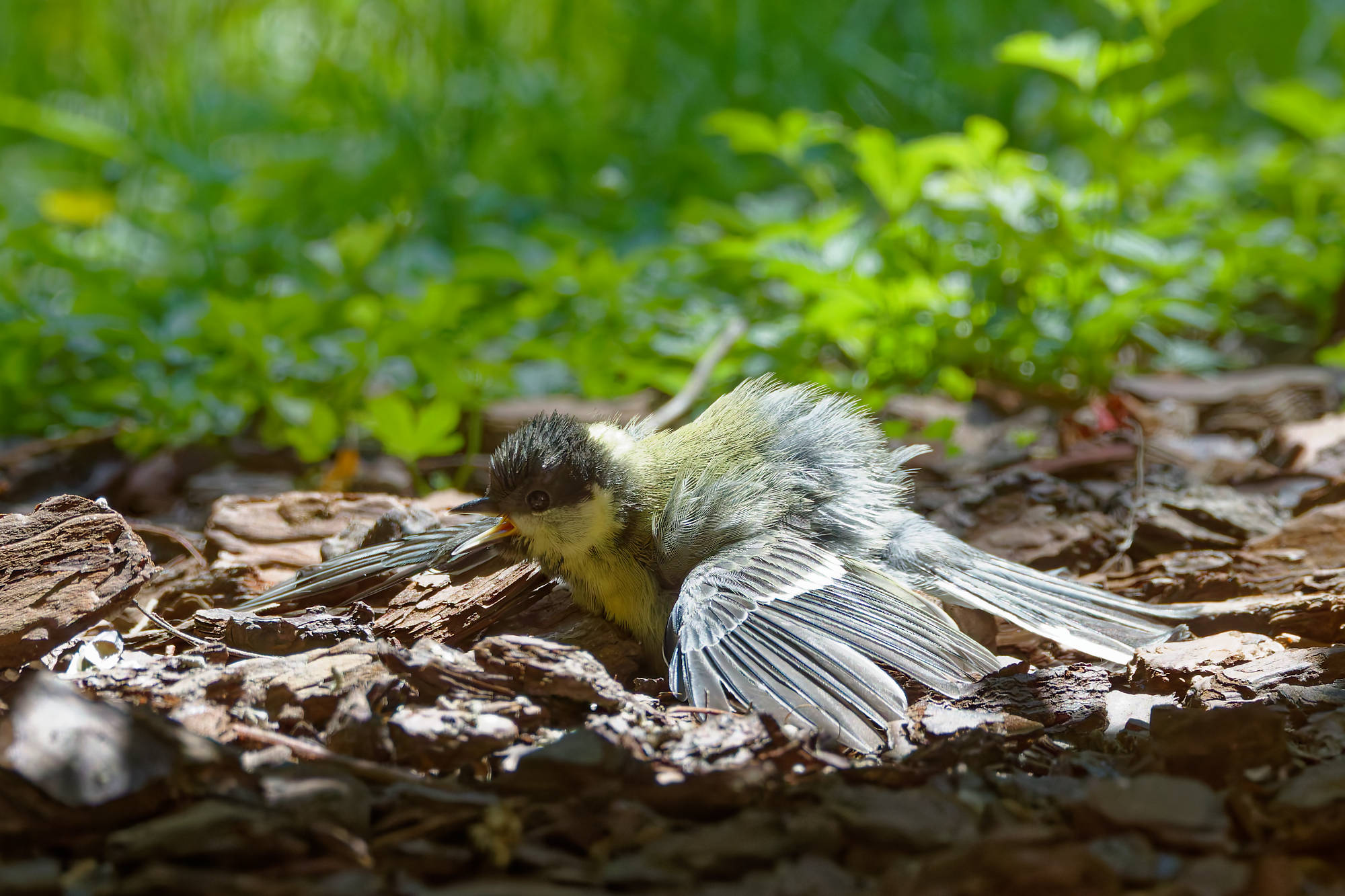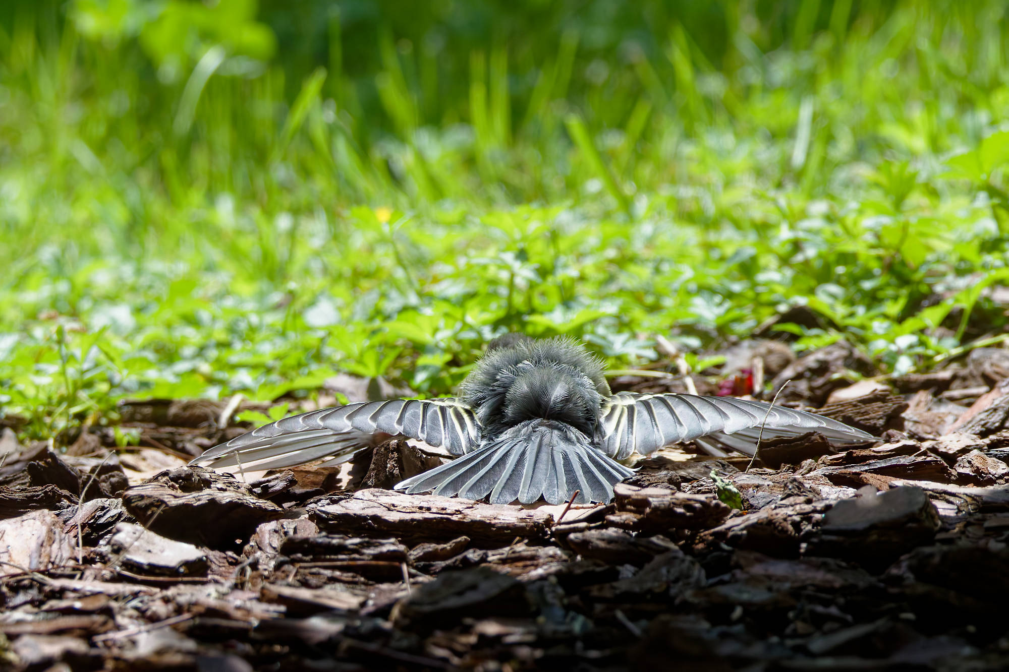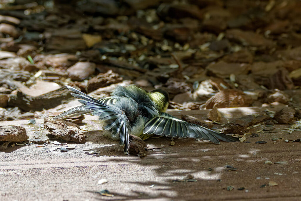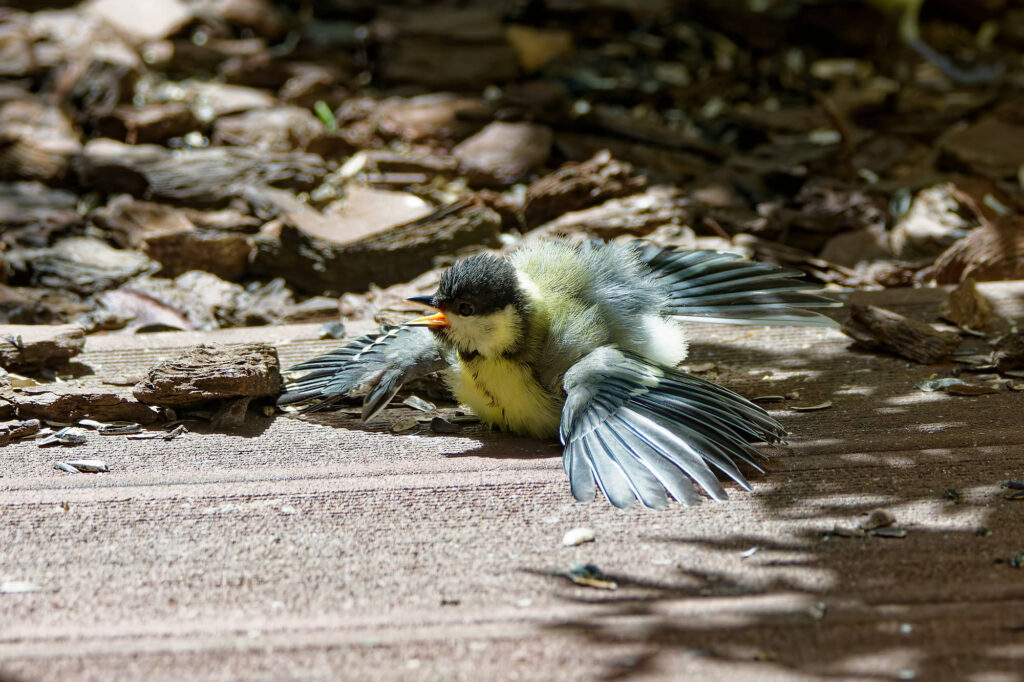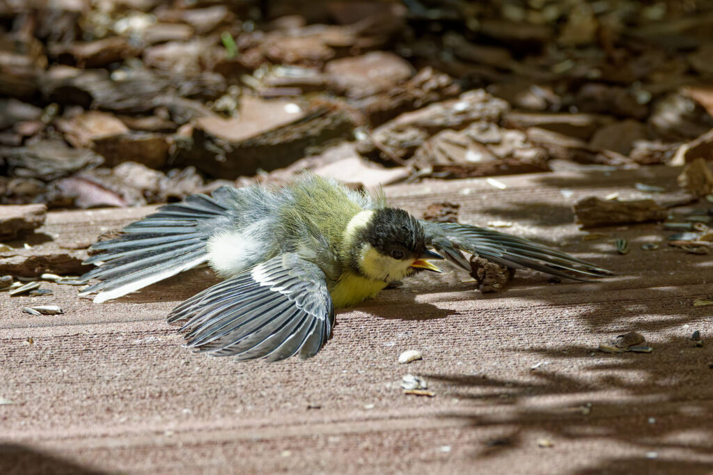 Un jour de forte chaleur, j’ai cru qu’une jeune mésange faisait un malaise en la voyant ainsi sur la terrasse.