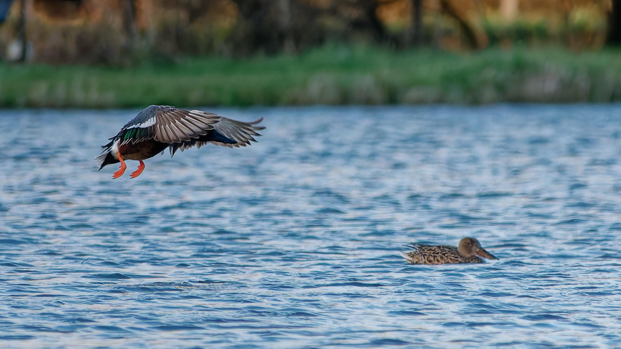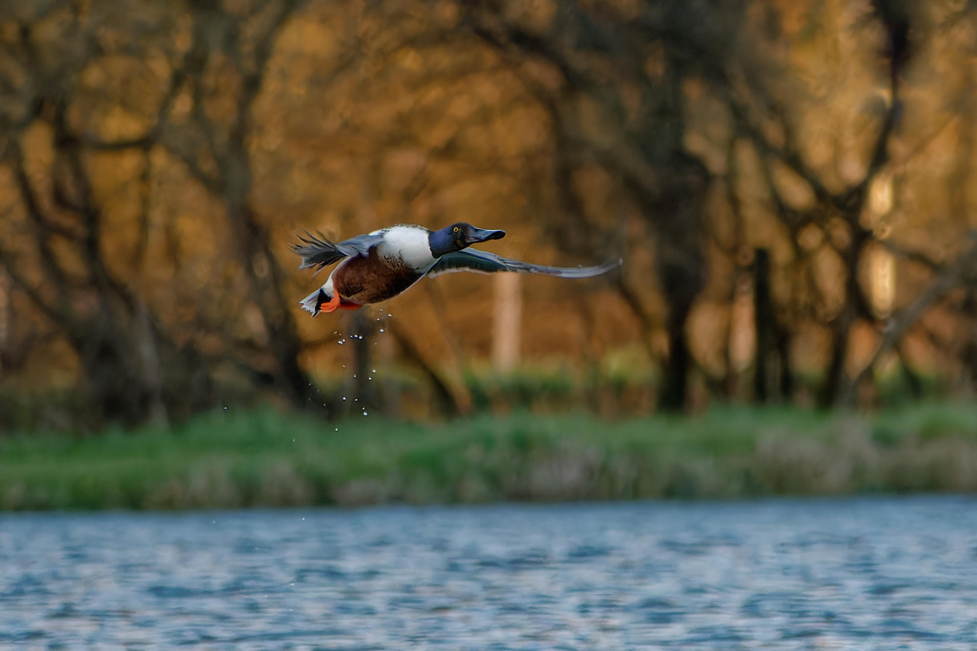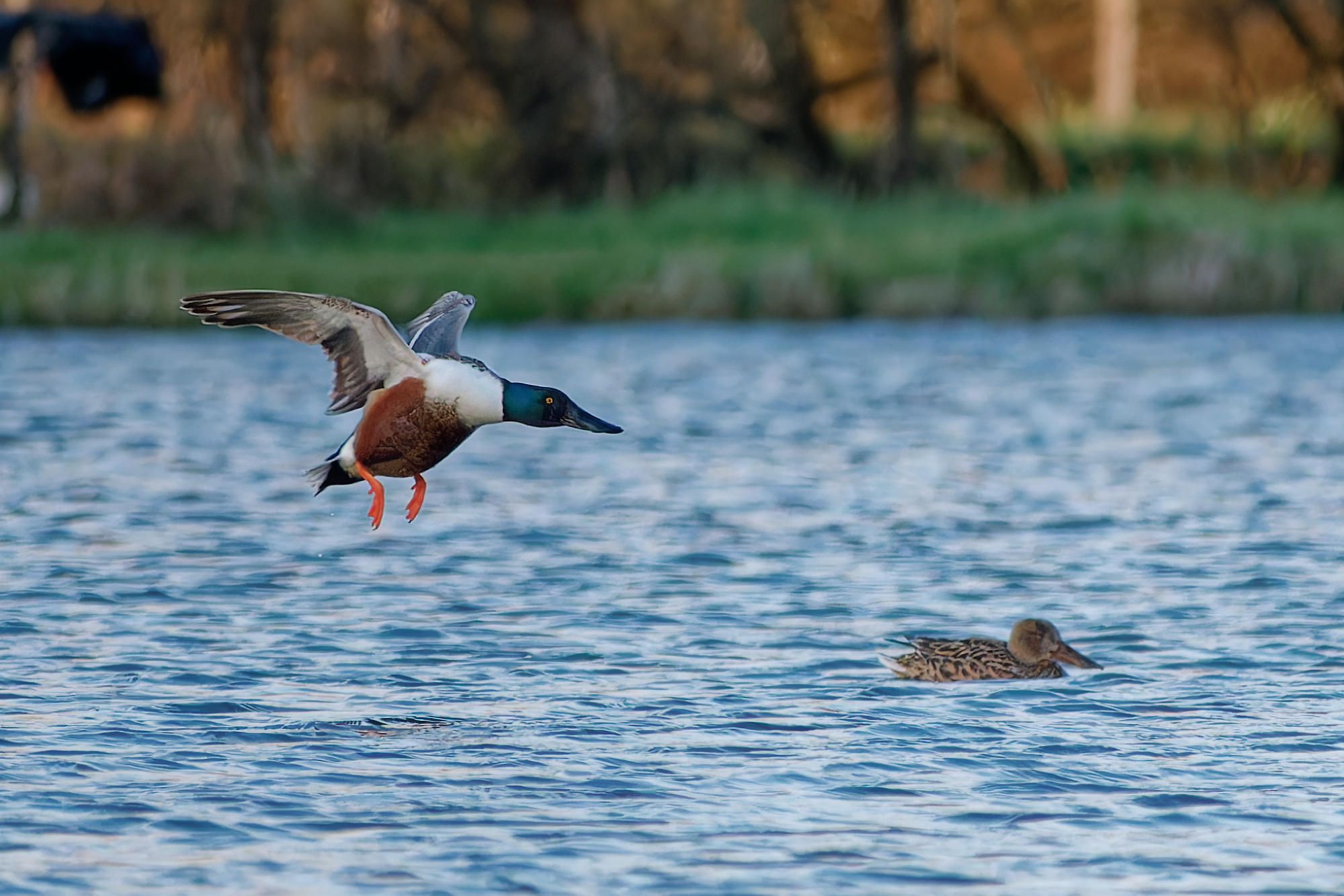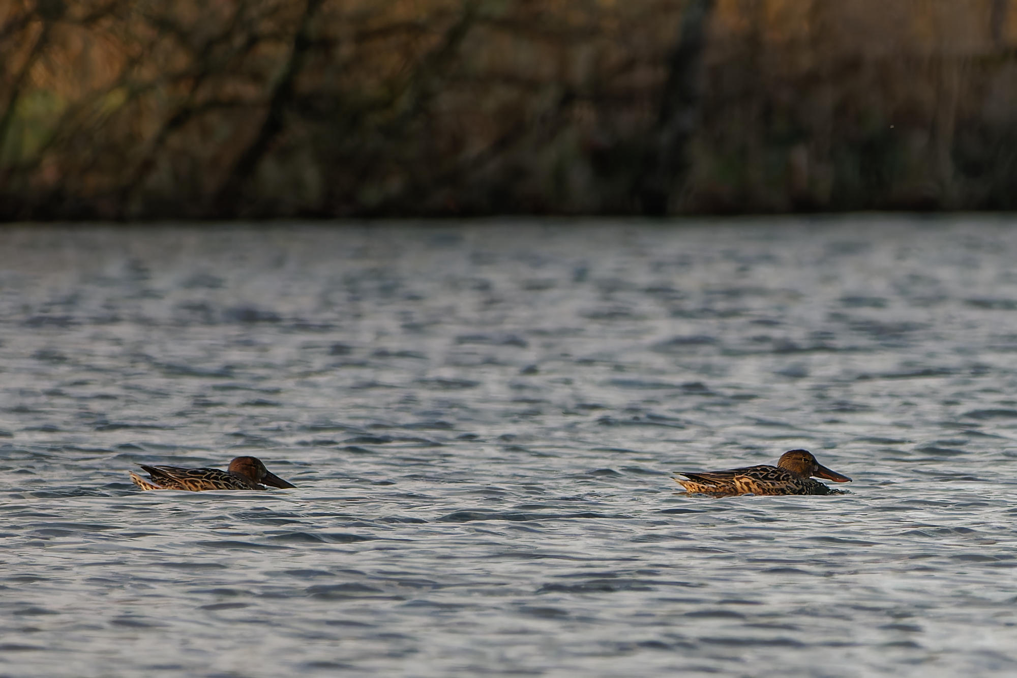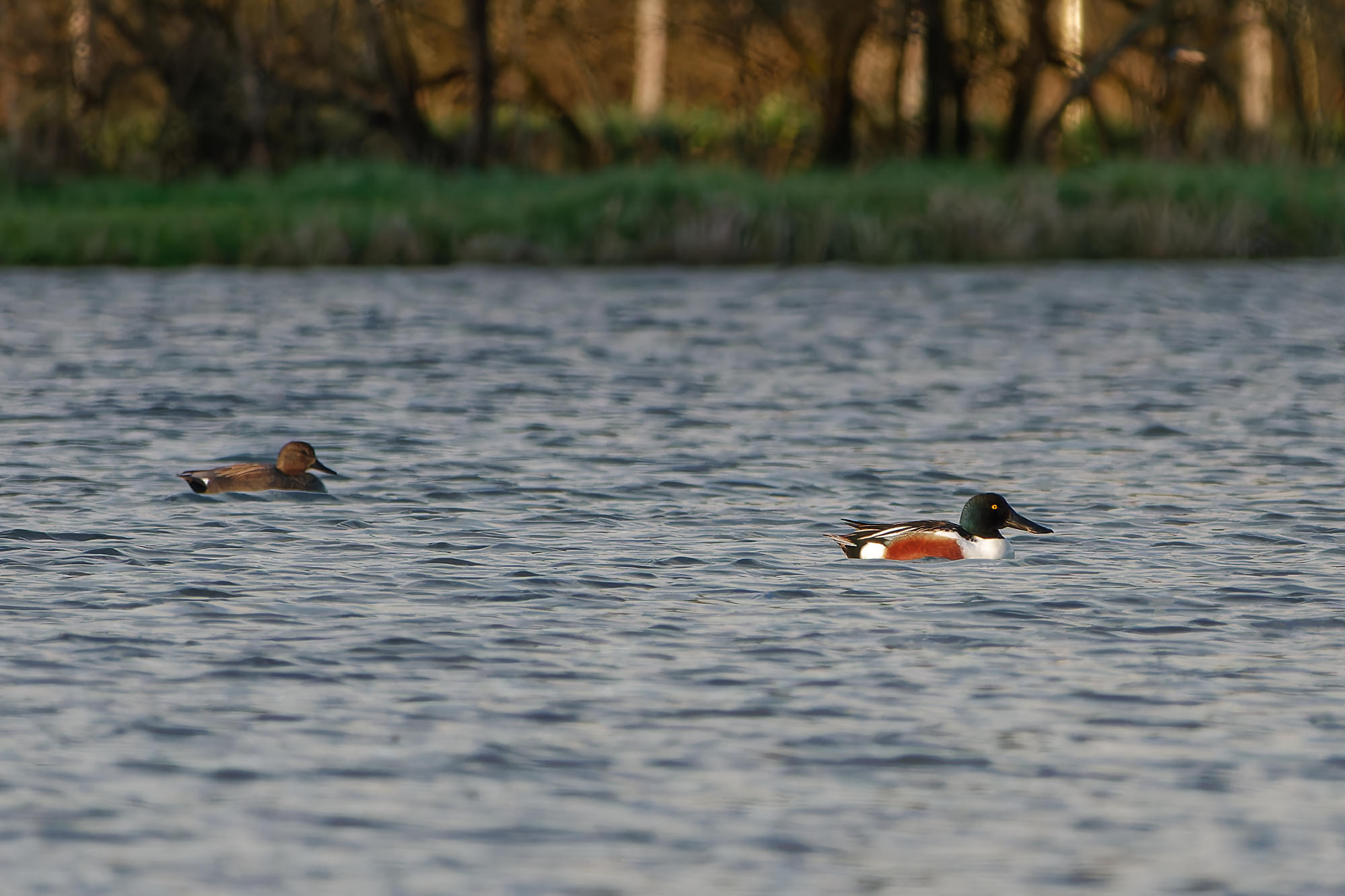 Deux couples de Canards souchet naviguaient sur l’étang ce soir-là. C’est la première fois que j’en voyais au village.
