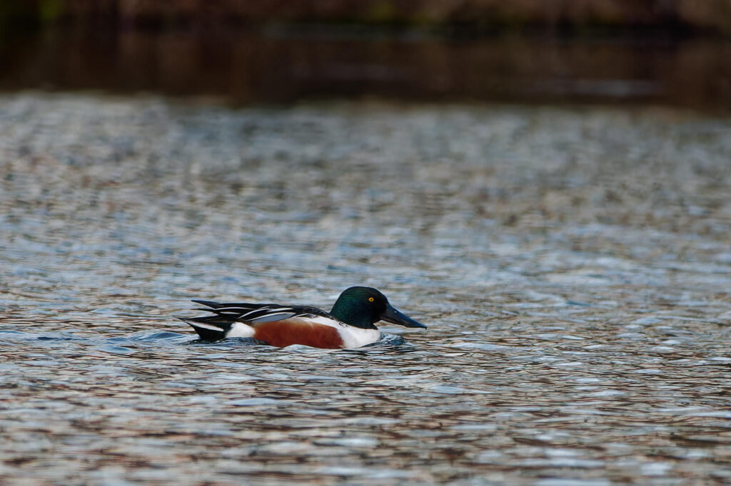 Il se distingue des autres canards par ce gros bec aplati, en forme de spatule, qui lui permet de filtrer l’eau.