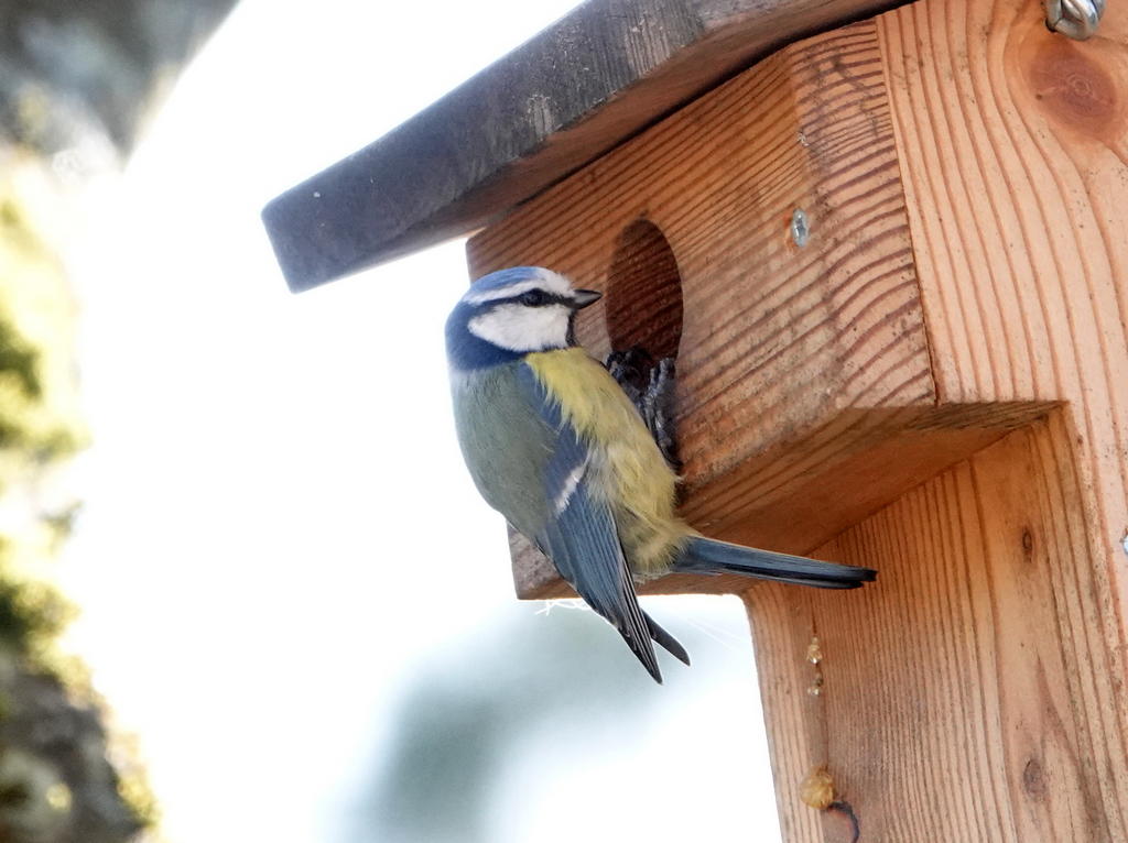 Il avait été loué l’an dernier à un couple de mésanges charbonnières, mais ce sont des mésanges bleues qui ont fait la visite aujourd’hui.