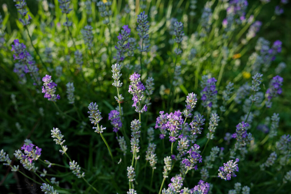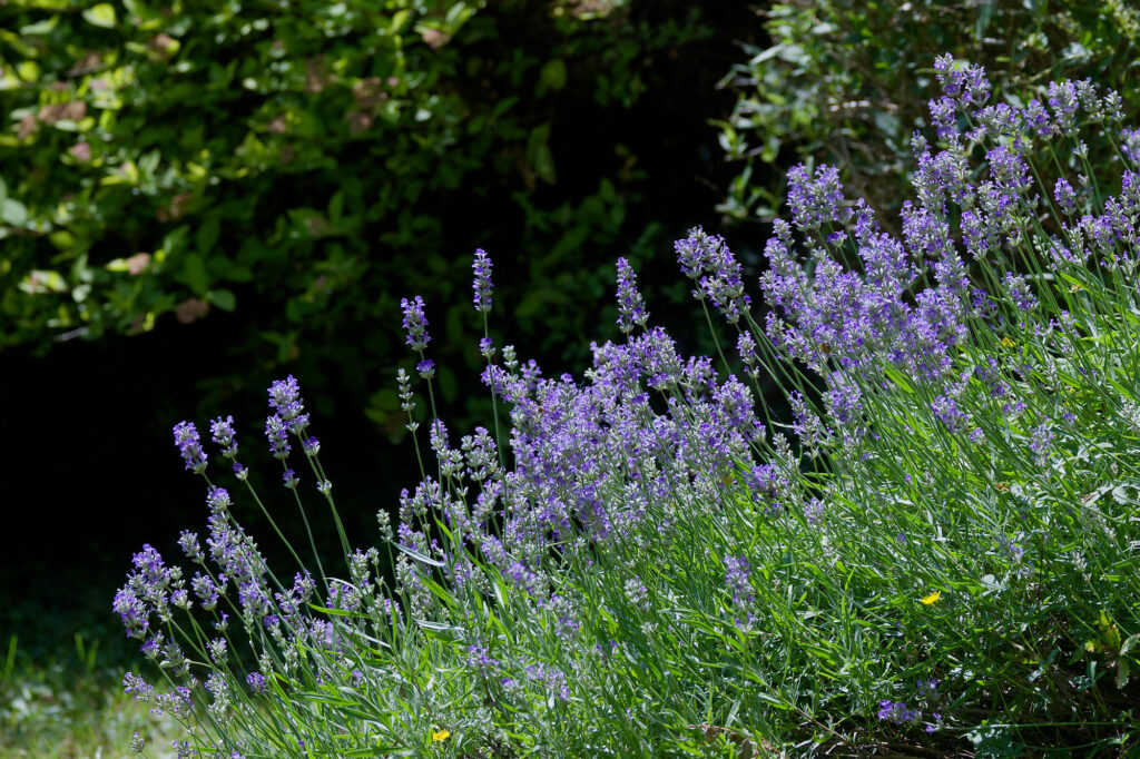 Le massif de lavande colore le jardin pendant un bon mois.