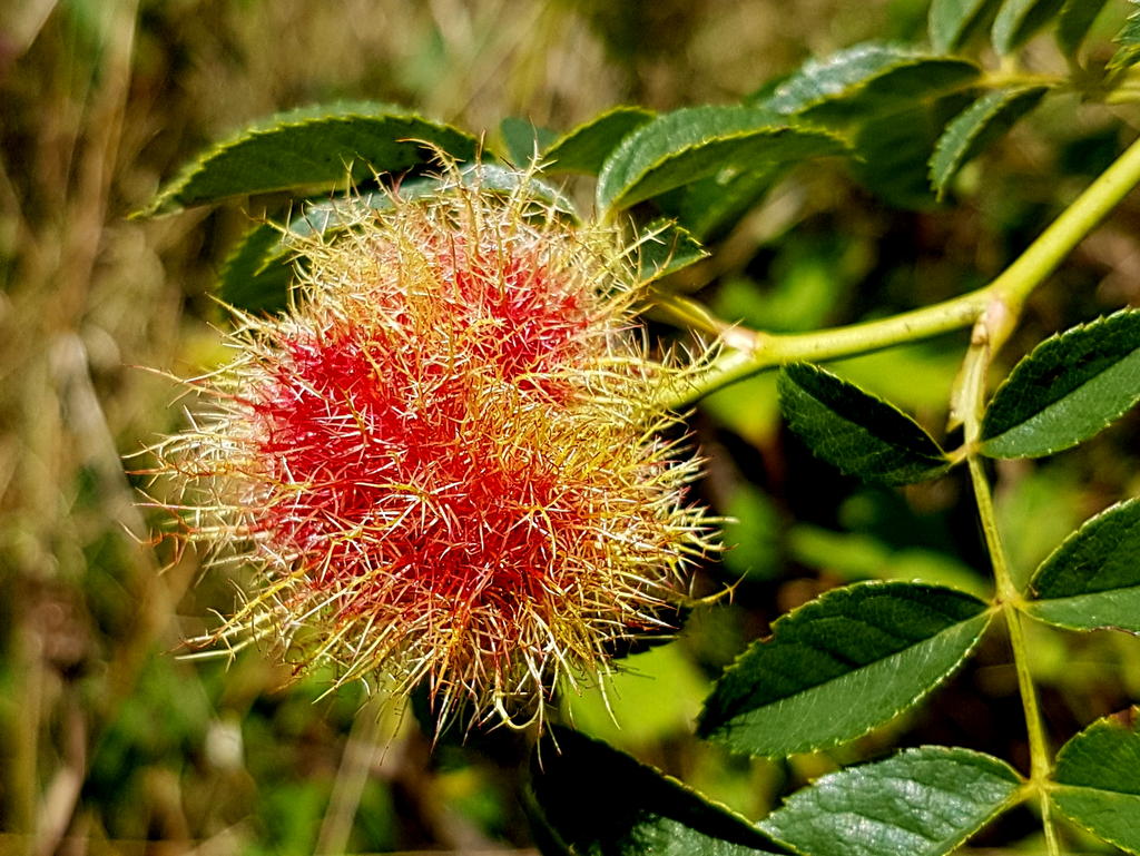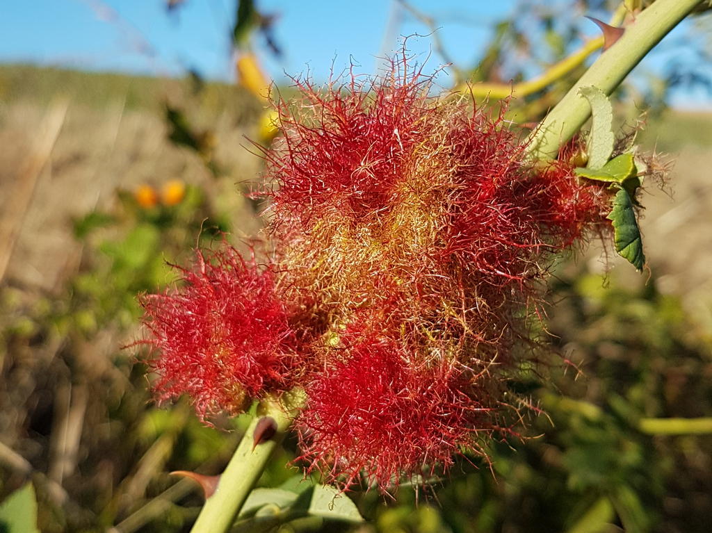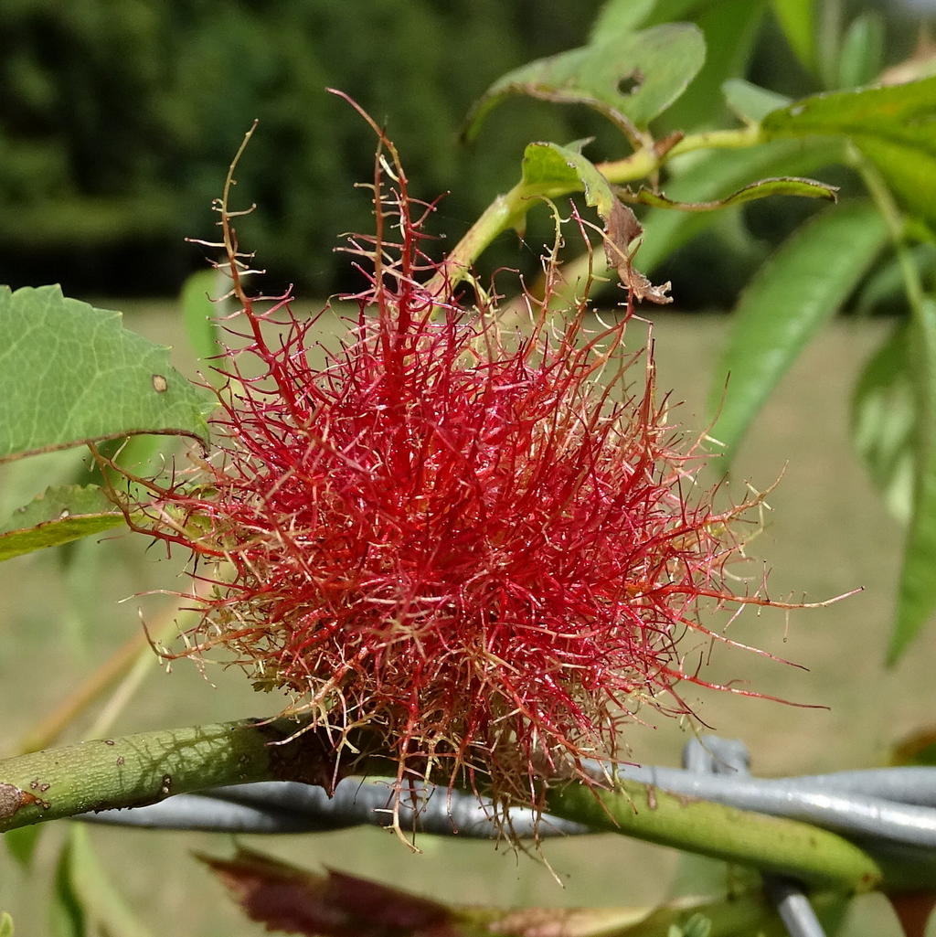 Le cynips n’est pas une fleur, mais un petit insecte parasite qui pond ses œufs dans les tiges de rosiers ou d’églantiers sauvages.