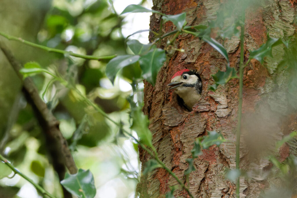 Les piaillements puissants et caractéristiques des jeunes pics épeiches au nid ont attiré mon attention, en promenade au bord de l’Erdre, près de Nantes.