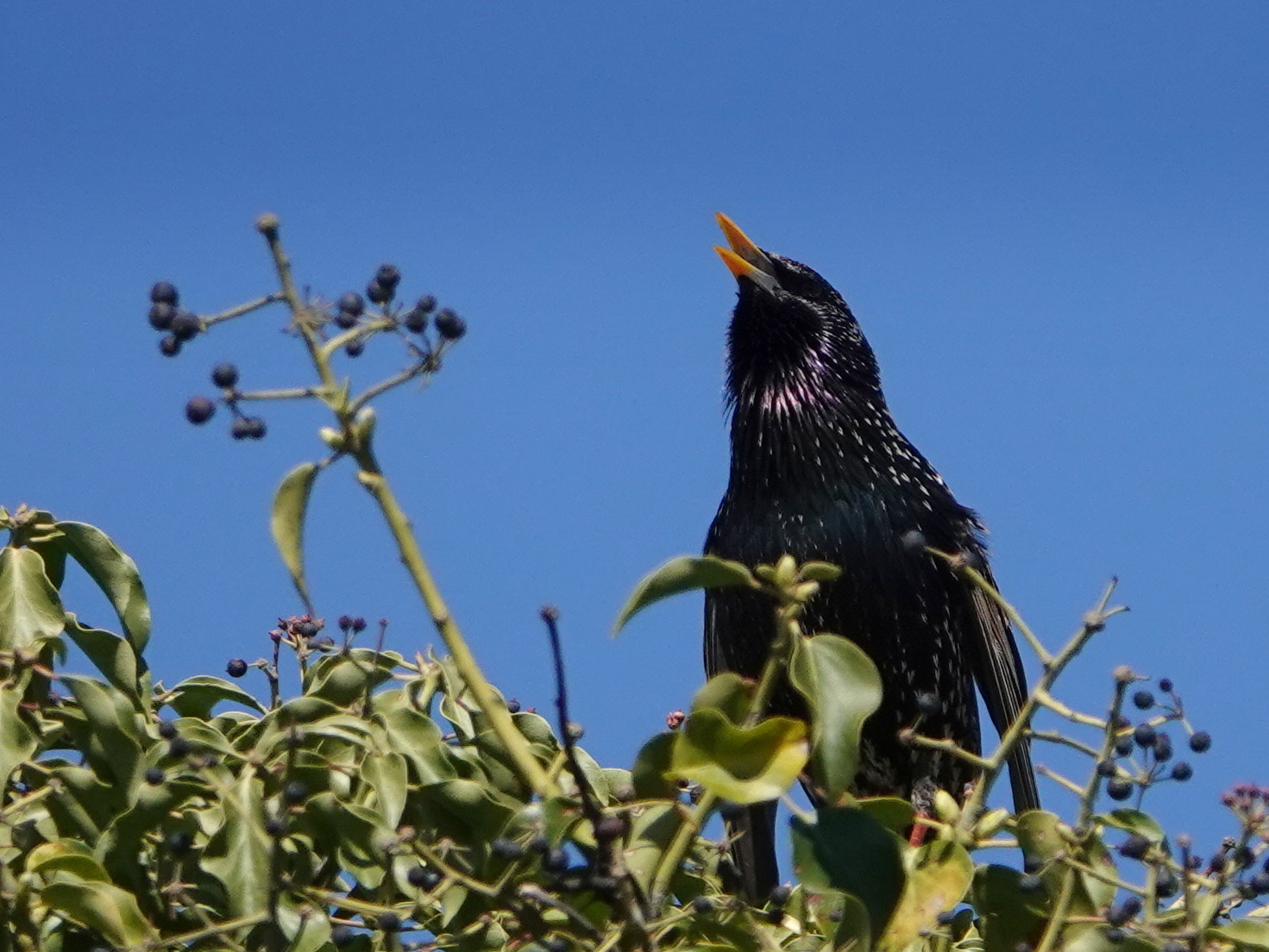 Un vieux transformateur EDF abandonné couvert de lierre, à côté de chez papi, s’est transformé en hôtel pour oiseaux. Il est actuellement occupé par les étourneaux, en pleine période nuptiale On peut voir leur plumage noir brillant, avec des reflets [...]