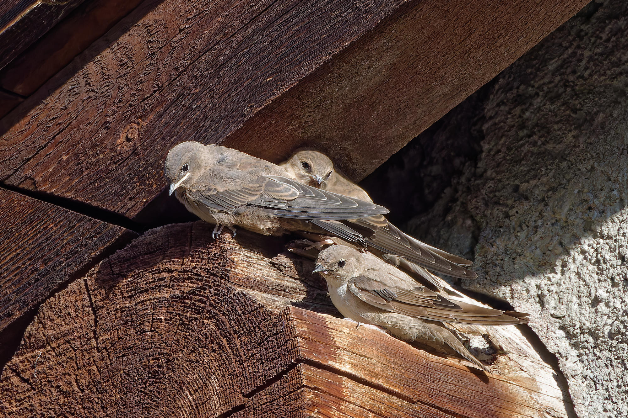 Trois jeunes hirondelles des rochers,