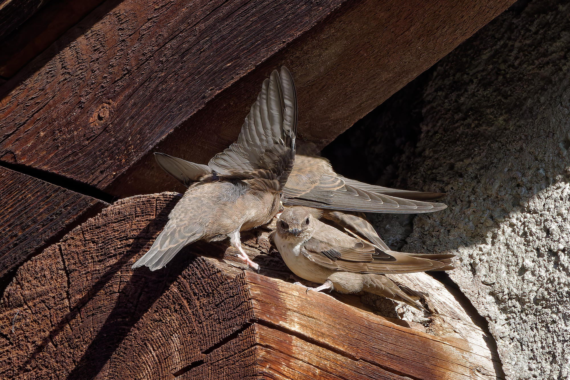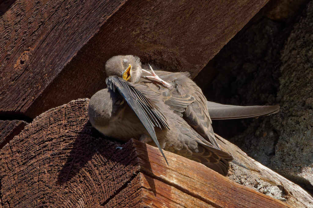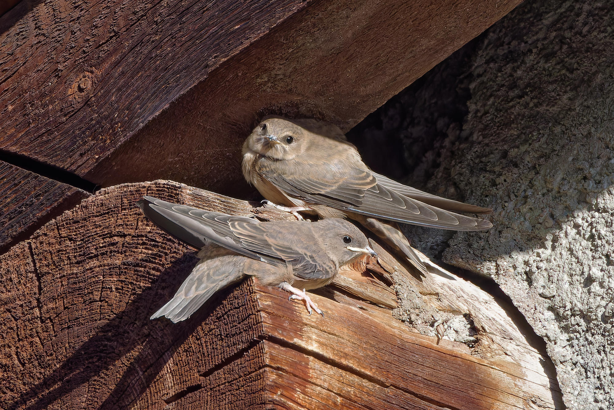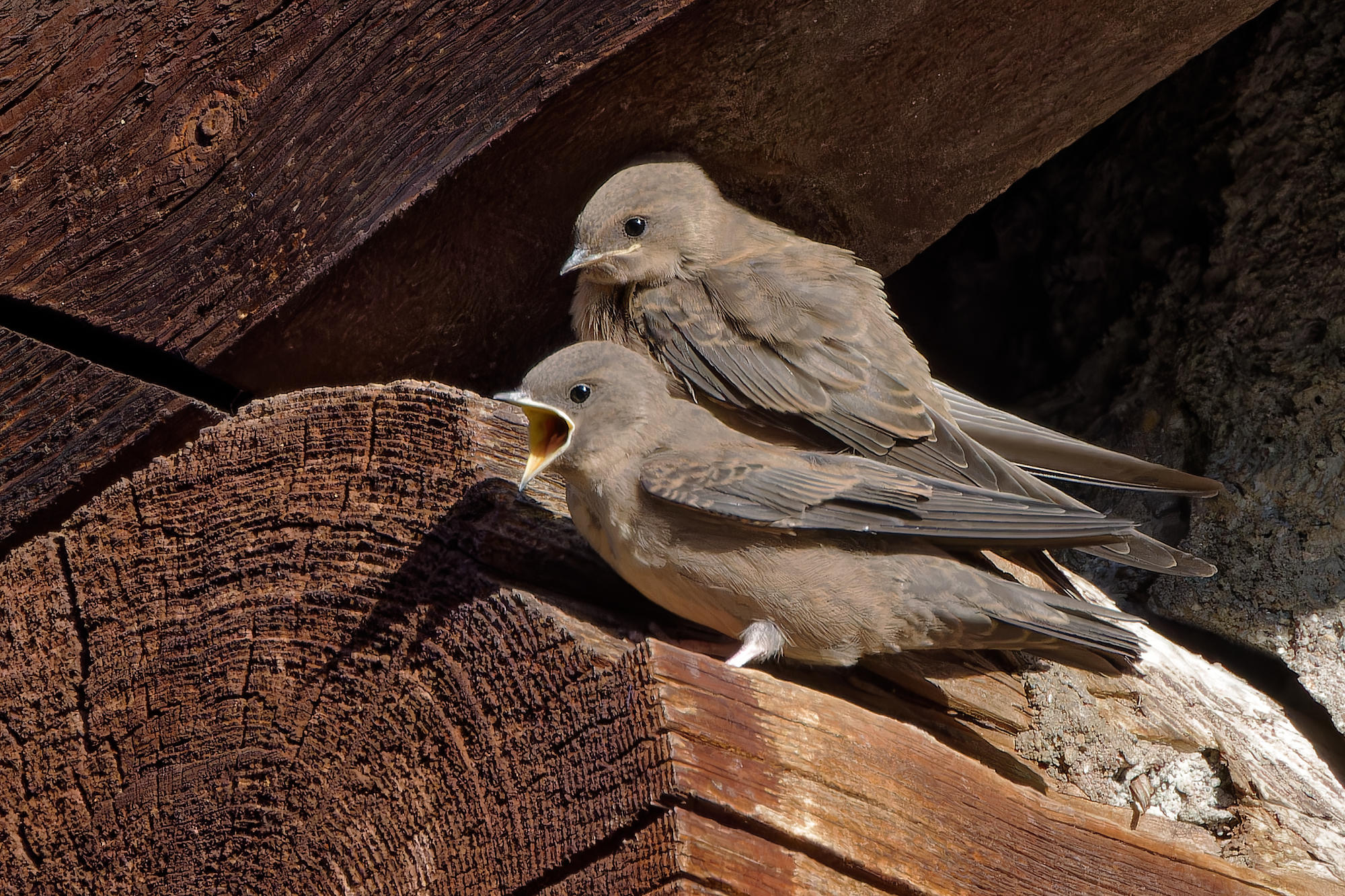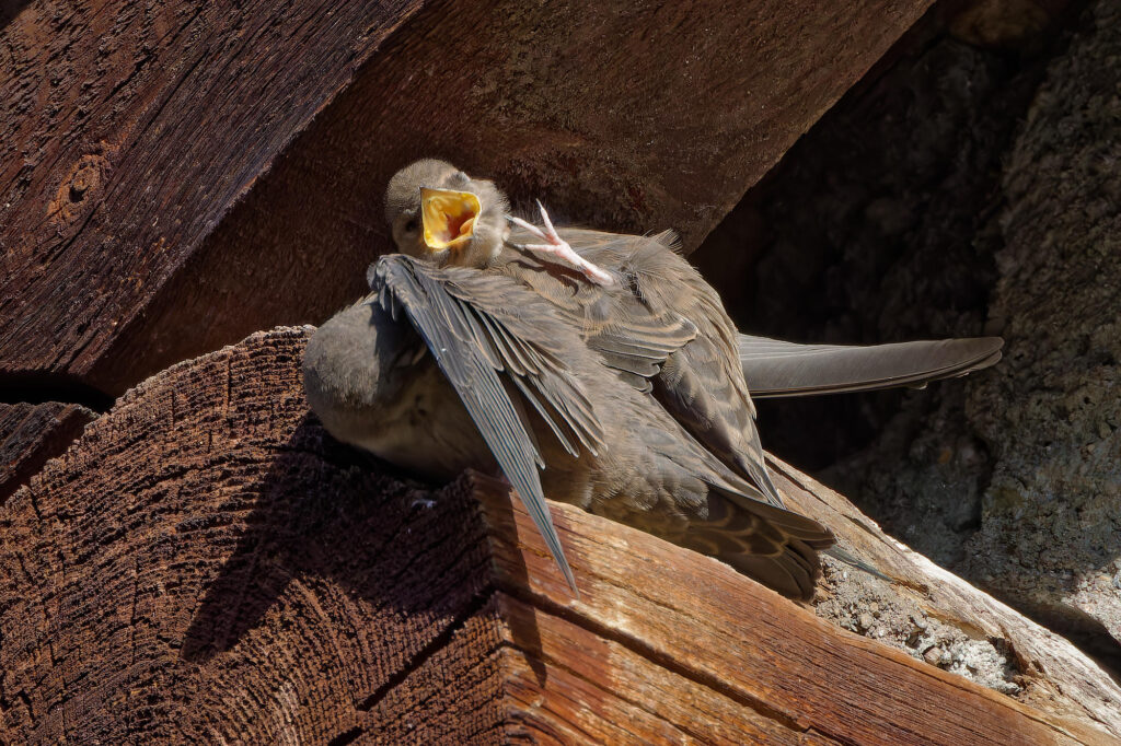 Deux jeunes hirondelles des rochers,