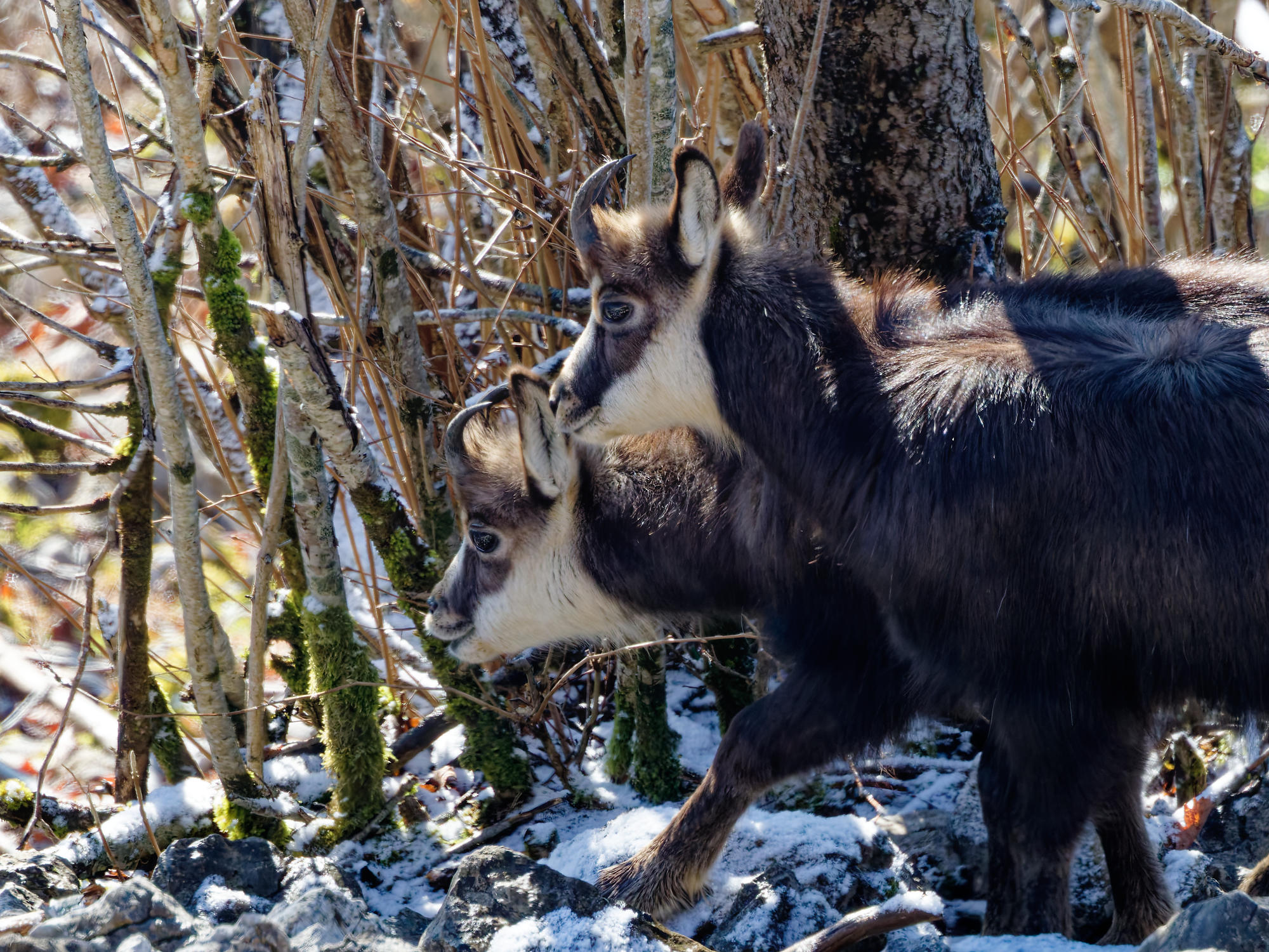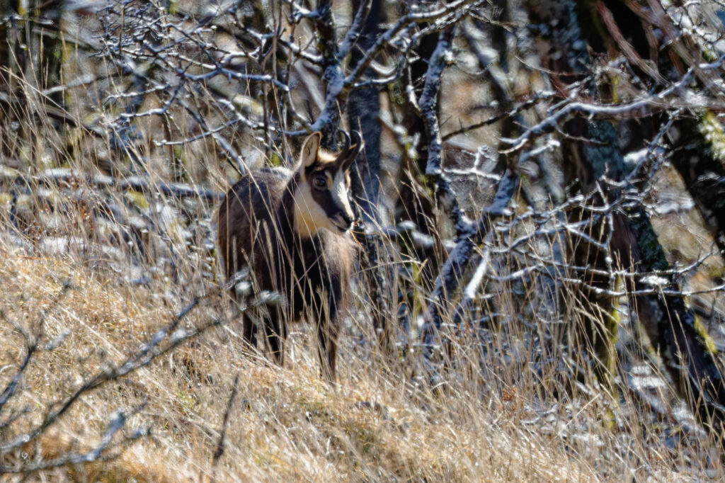 Ils surveillent de loin le petit bois des éboulis, là où se trouve ce jeune, aux cornes plus courtes que les oreilles.