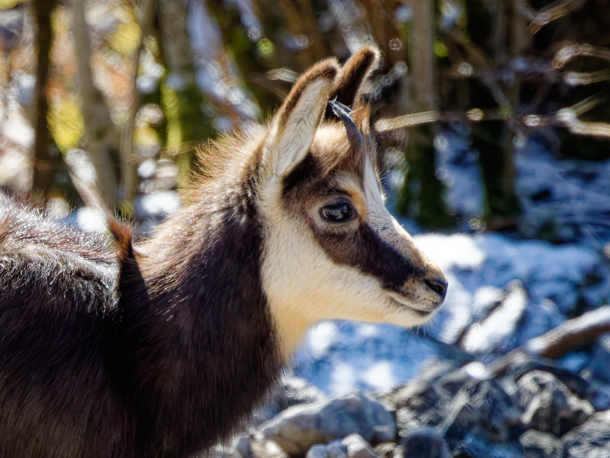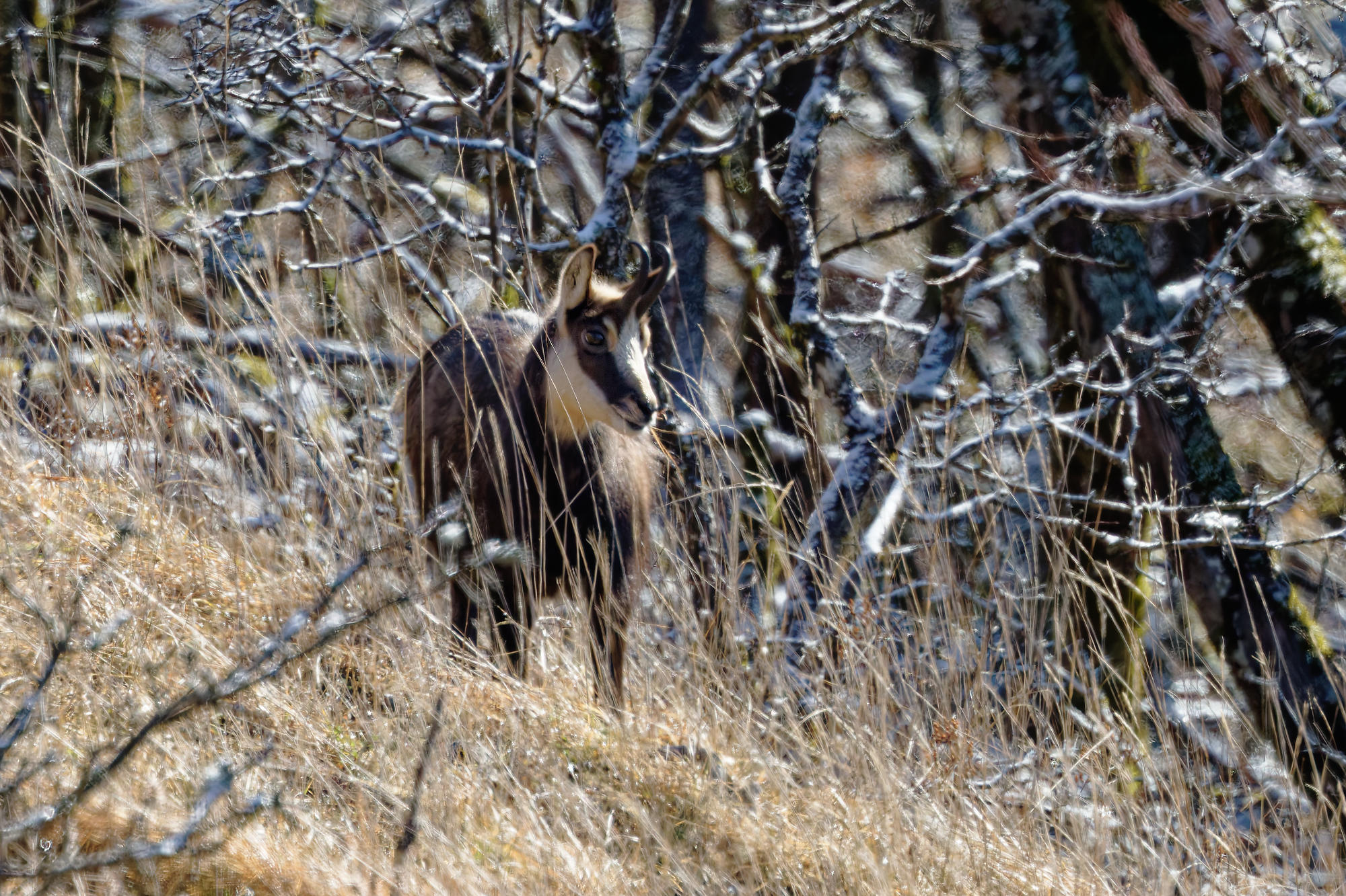 Il vit son premier hiver, ou peut-être elle, avec ses cornes fines et peu courbées.