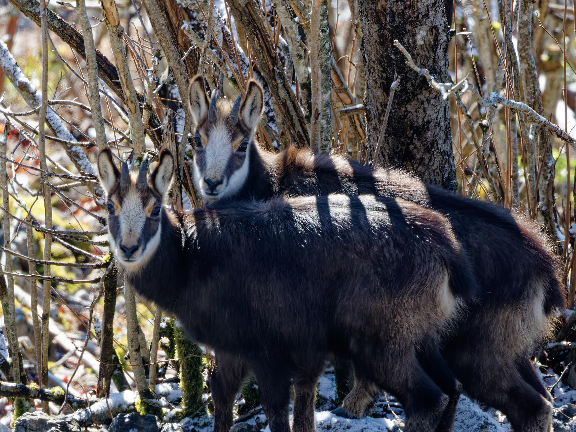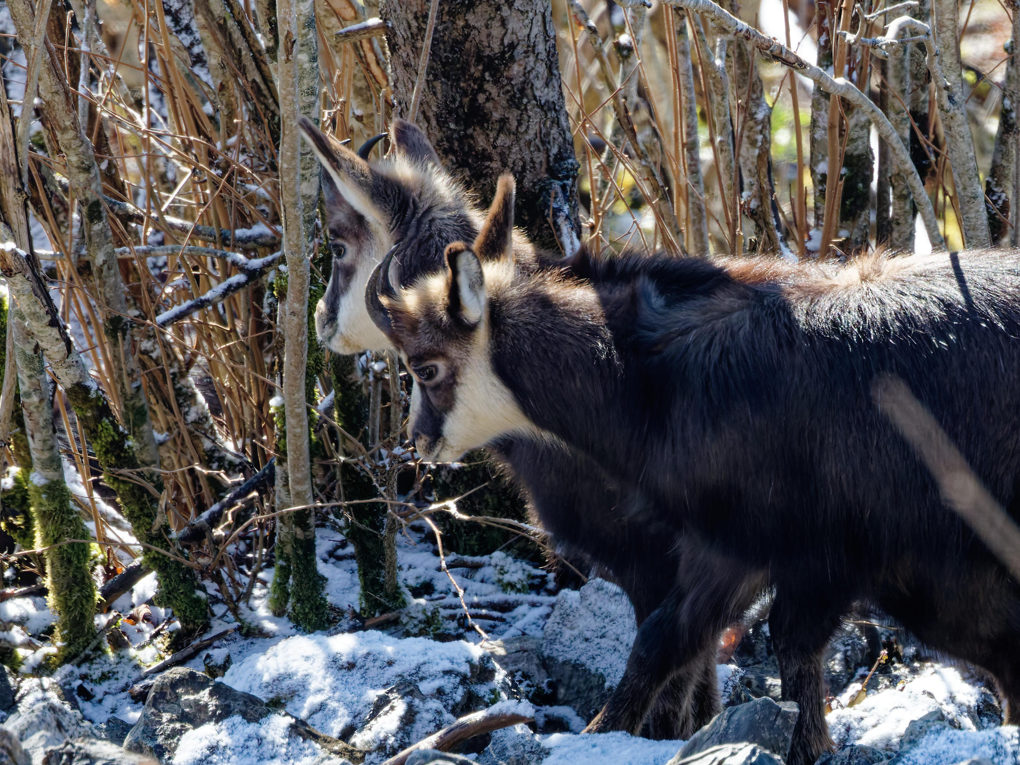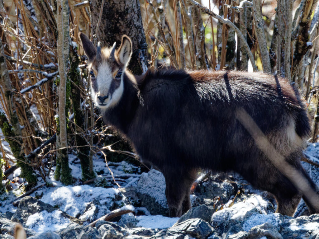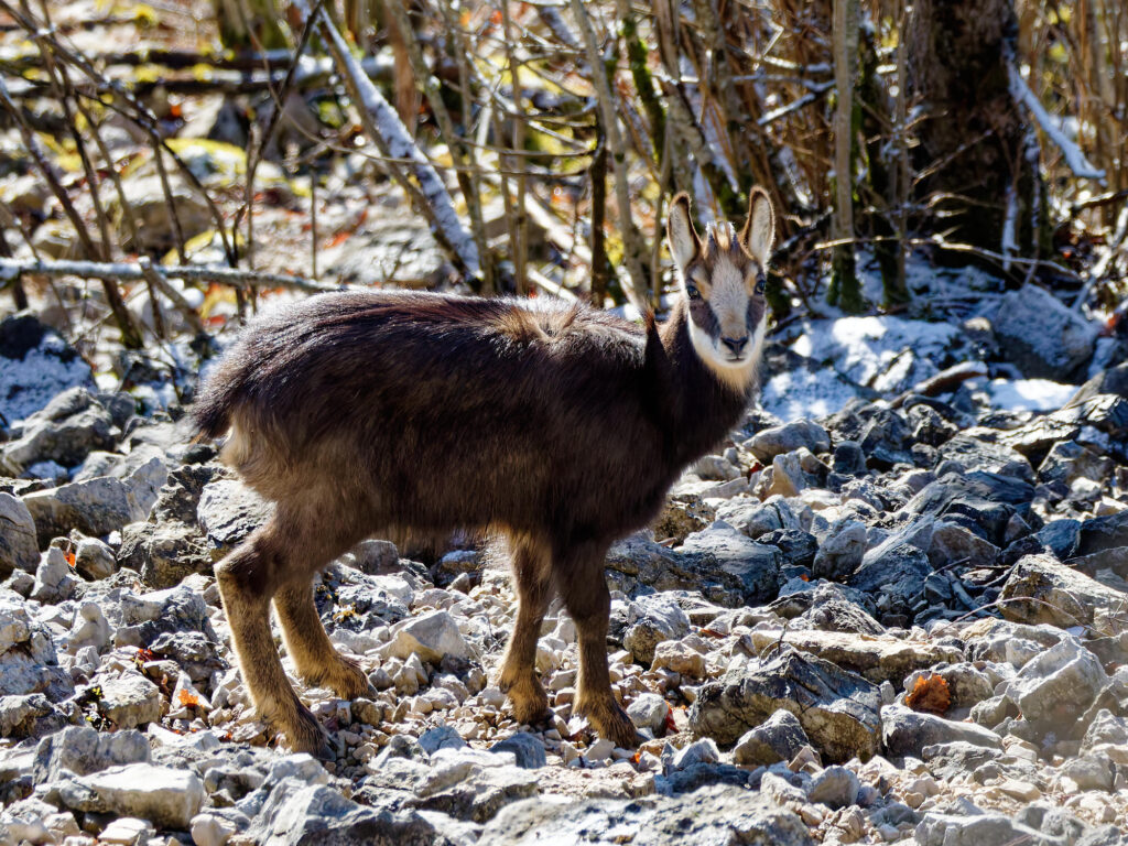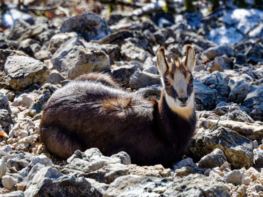 Les chamois sont de sortie et les adultes ont emmené la harde sur le versant ensoleillé.