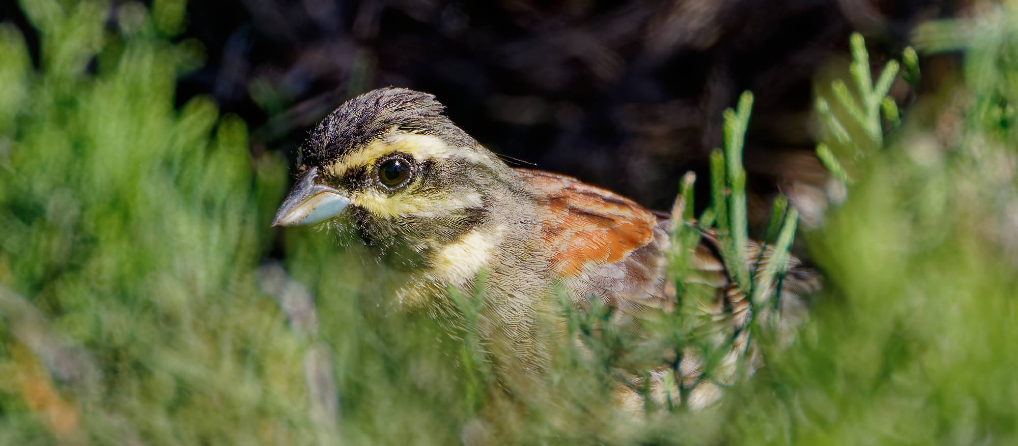 Costume de bagnard sur la tête, les bruants zizi sortent du maquis. À l’instar de la fauvette mélanocéphale, il est temps pour eux d’arrêter la cavale, et de revendiquer un territoire. Le costume de Madame est une peu plus délavé, [...]