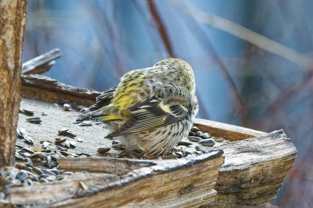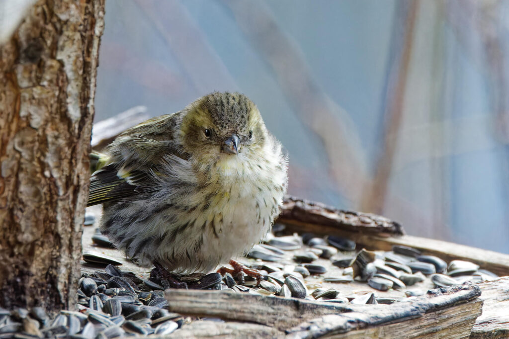 Les tarins des aulnes ont tardé à revenir à la mangeoire cette année, mais ils arrivent enfin.