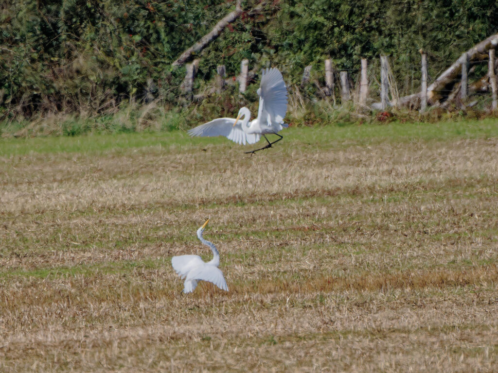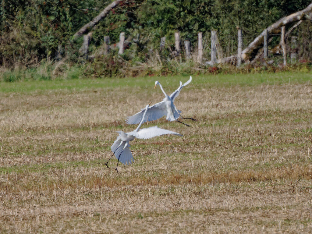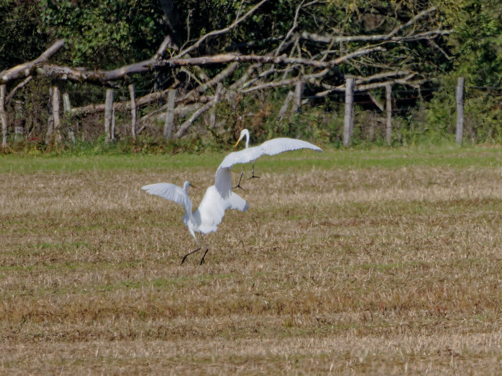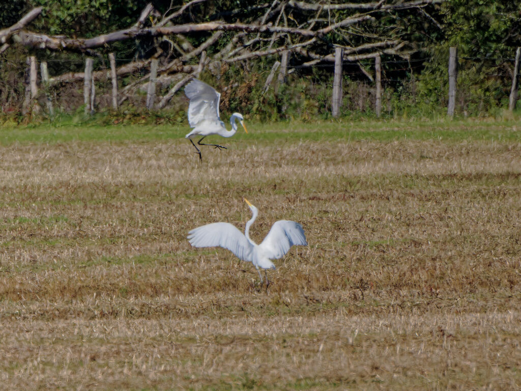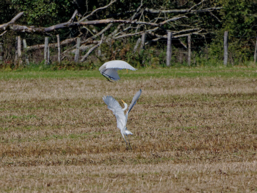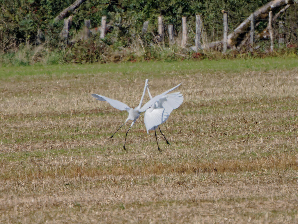 « Dis donc, Aigrette, ne serait-ce pas une concurrente qui envahit ton territoire, là-bas ? «