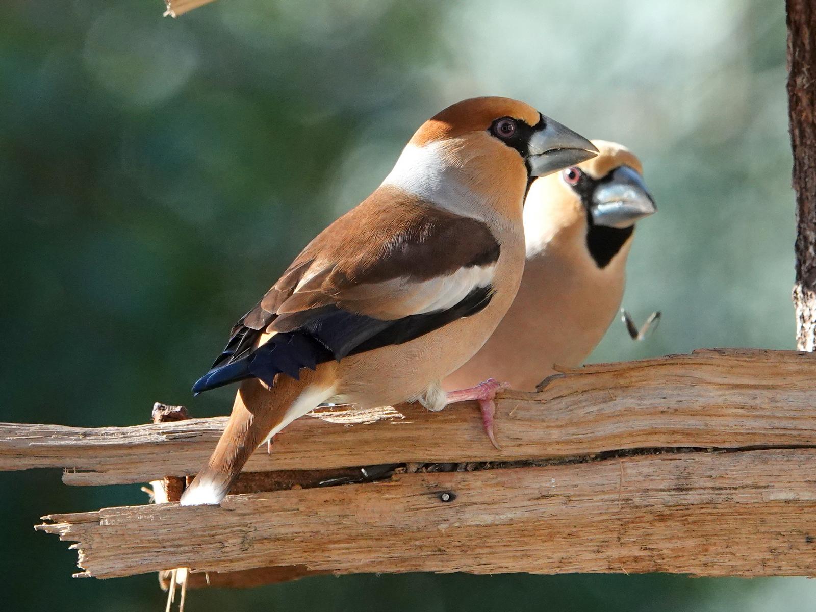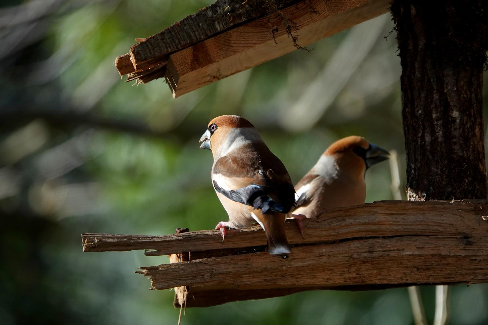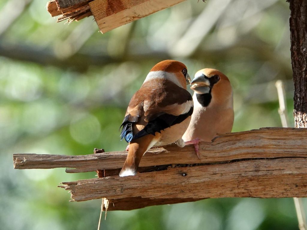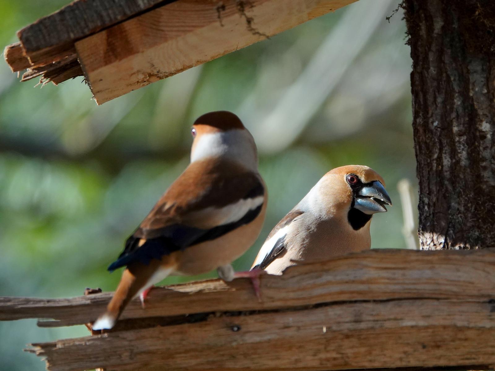 Ce gros bec a trouvé un miroir sur la mangeoire.