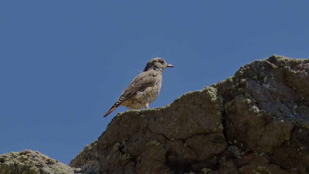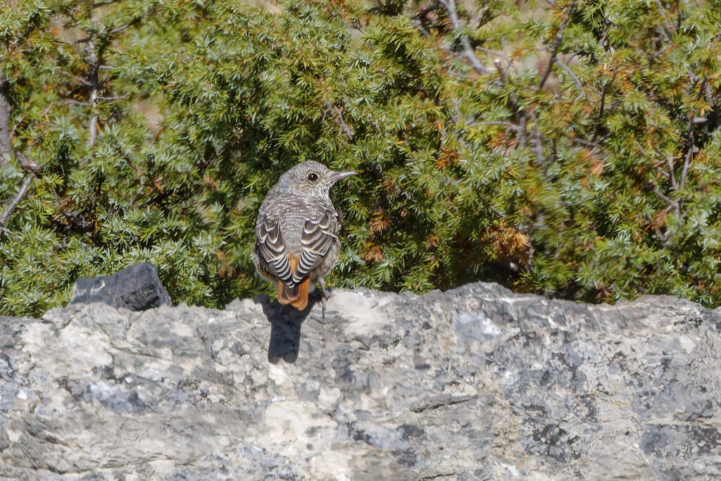 L’histoire a commencé avec cette photo prise un matin en promenade. Un peu à contre-jour, je pensais avoir vu un traquet, mais en développant ma pellicule j’ai découvert un jeune monticole de roche.