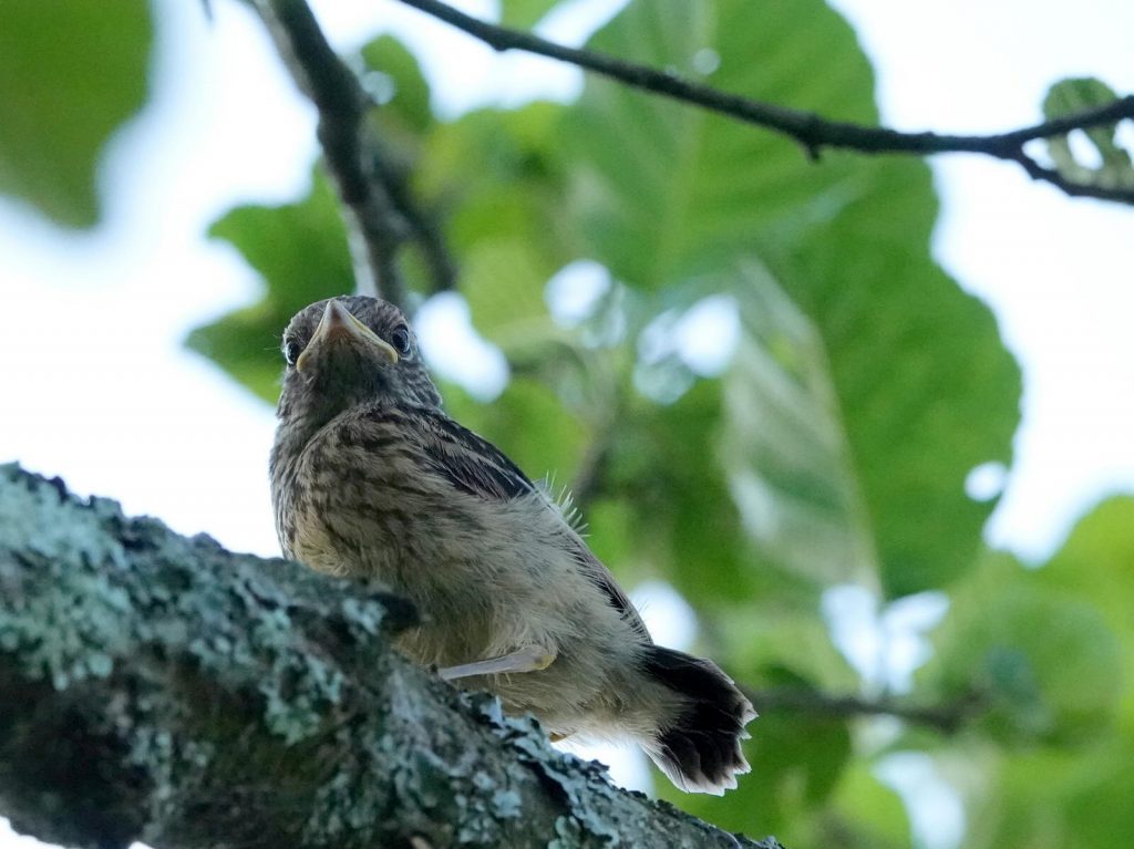 Il s’agit bien sûr protéger et dissimuler les petits fraîchement sortis du nid, dont celui-ci, que j’ai malgré tout pu surprendre, le temps d’une photo.