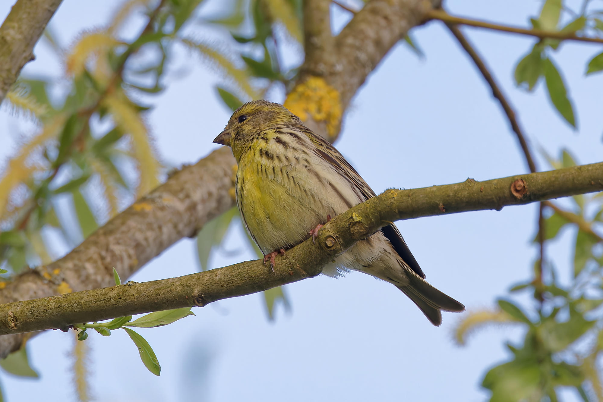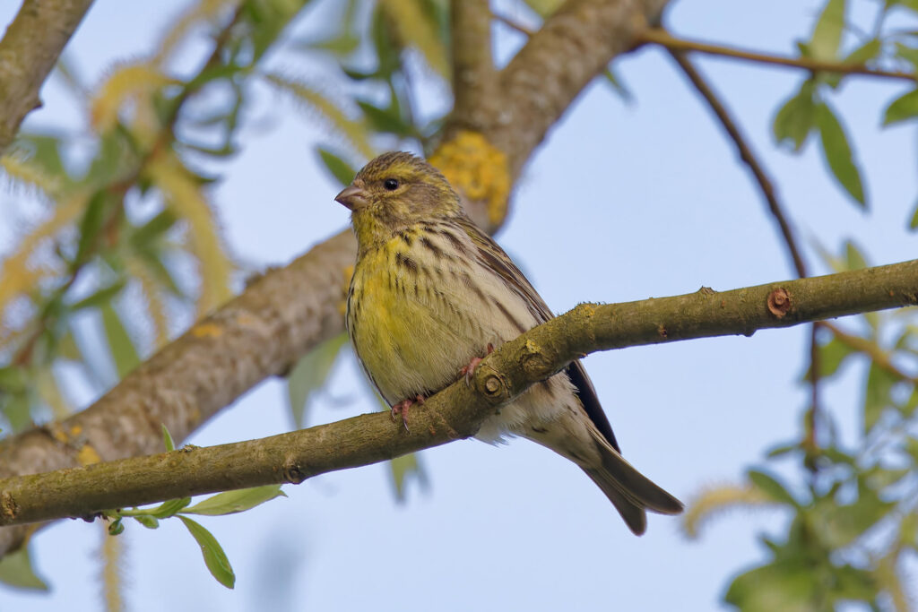 Voici le petit serin qui ajoute son trille rapide et aigu aux chants des arrivants du printemps.