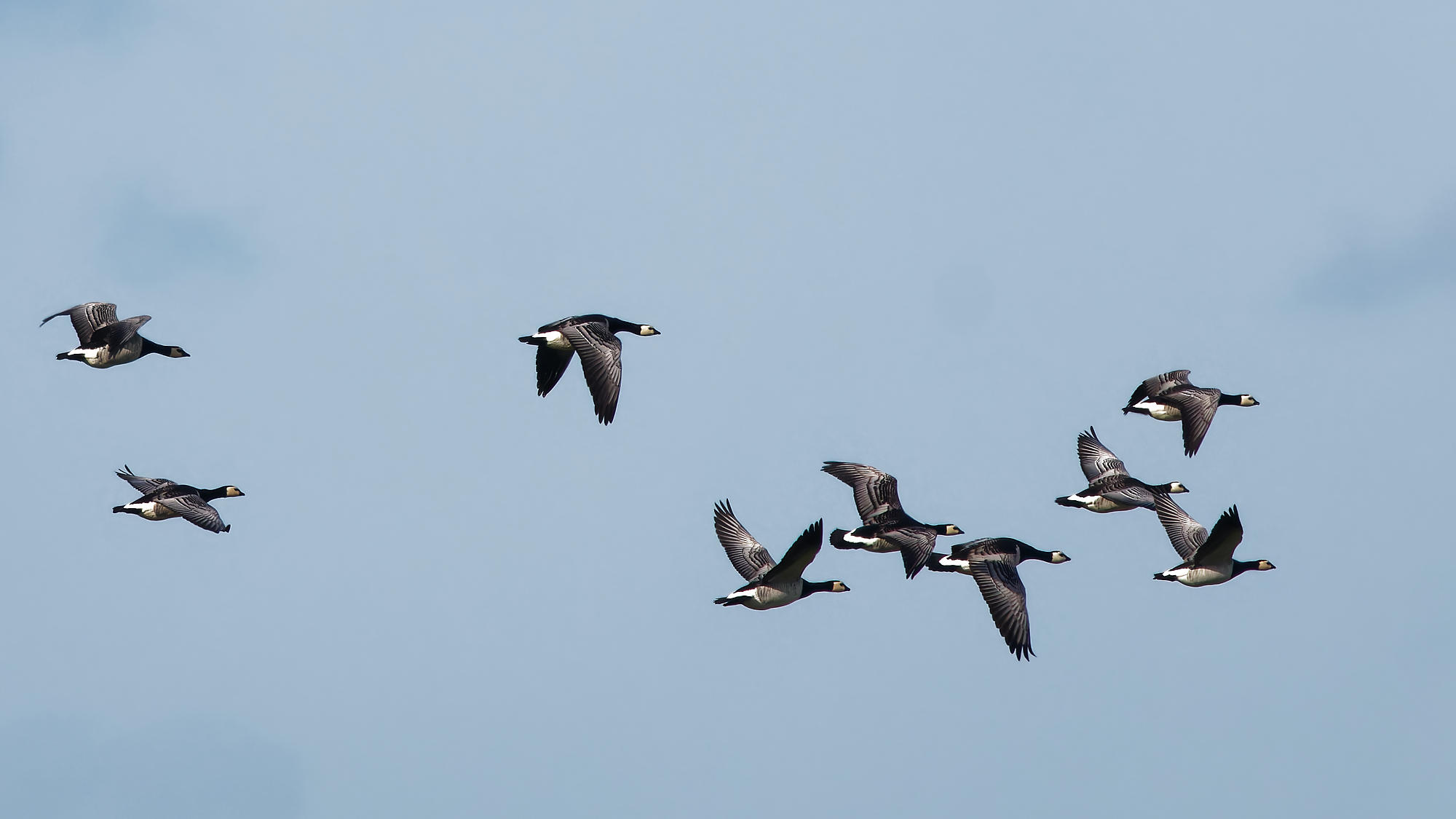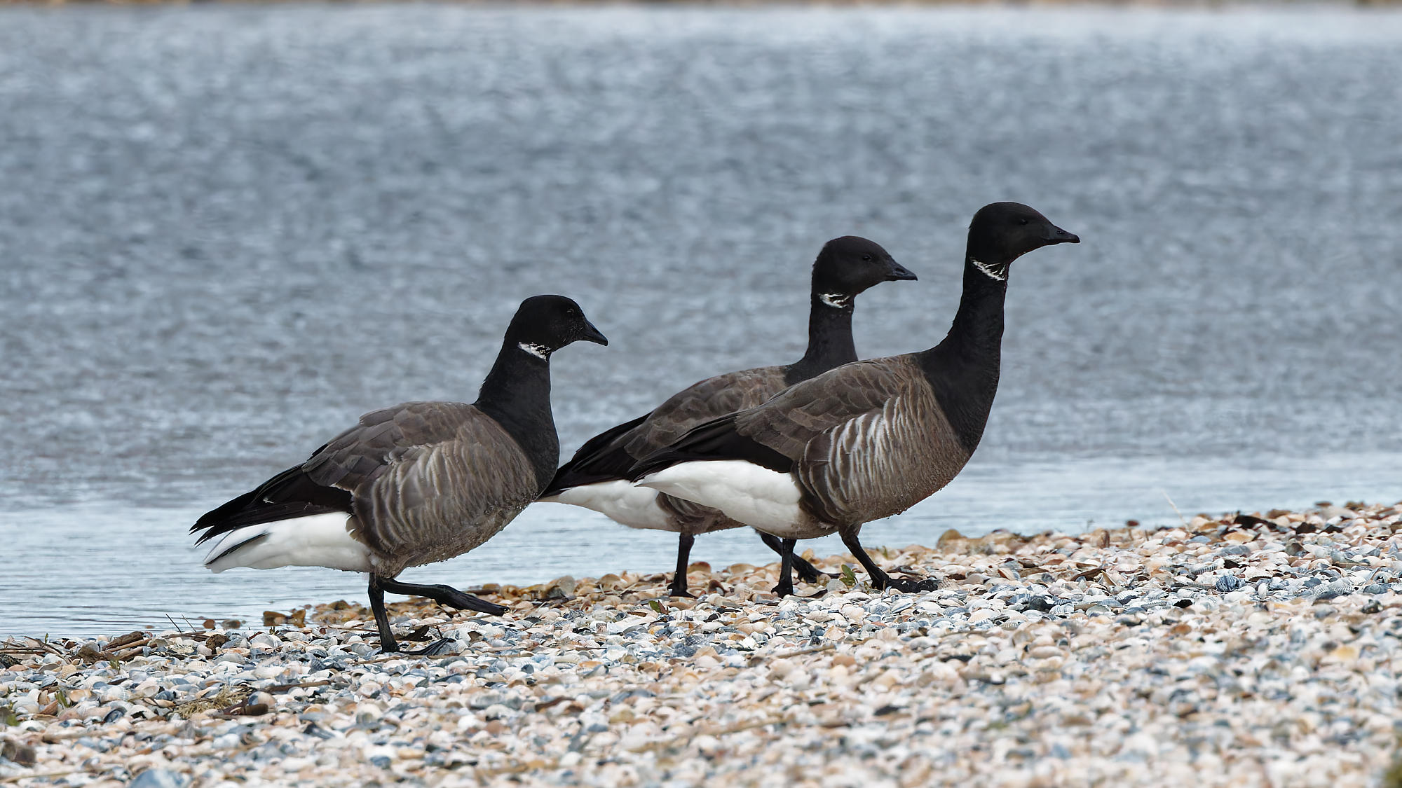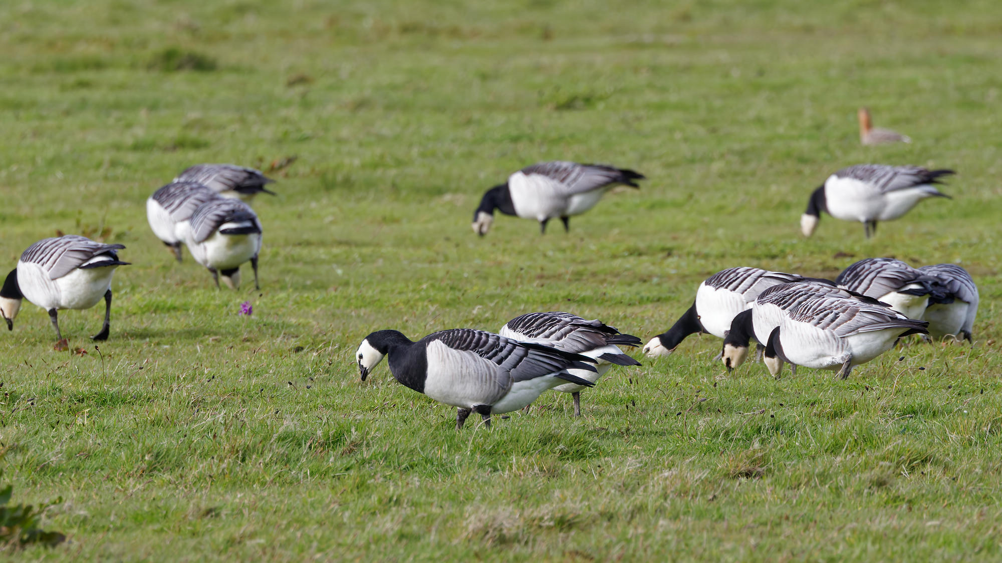 puis les bernaches nonnettes, aux joues blanches et à la nuque noire.