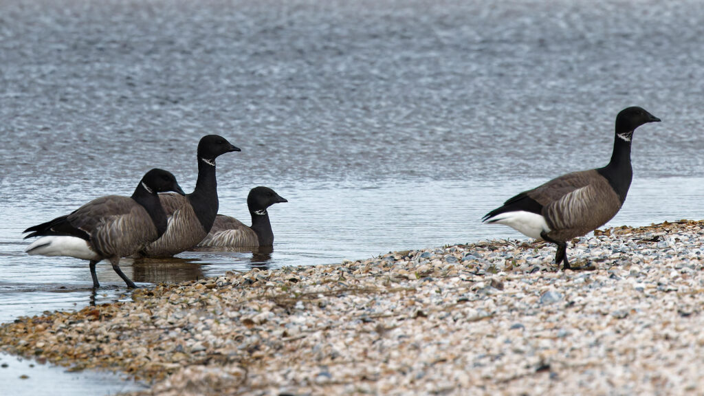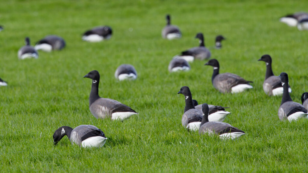Tout d’abord les bernaches cravant, à la tête noire et à l’élégant collier blanc,