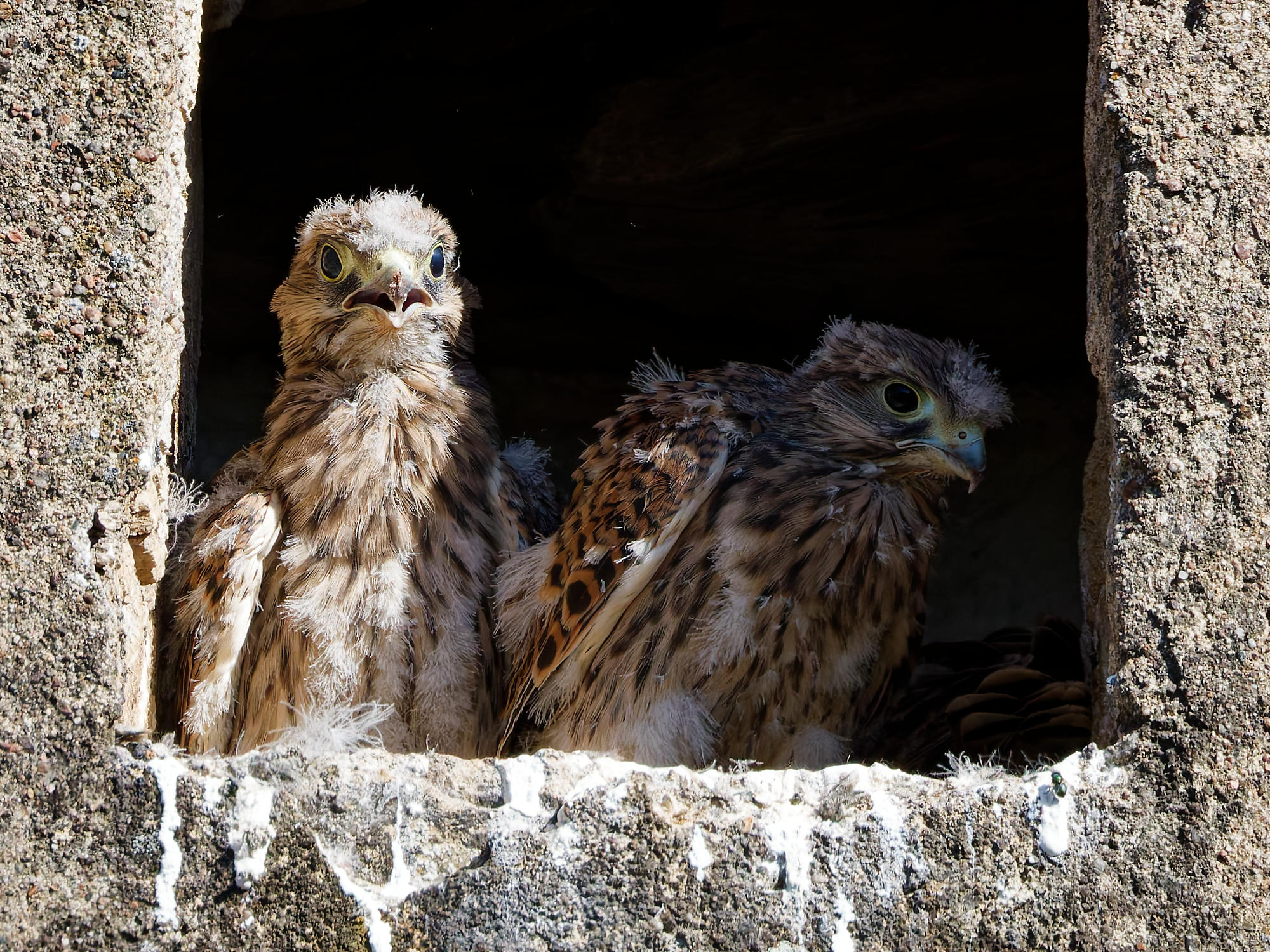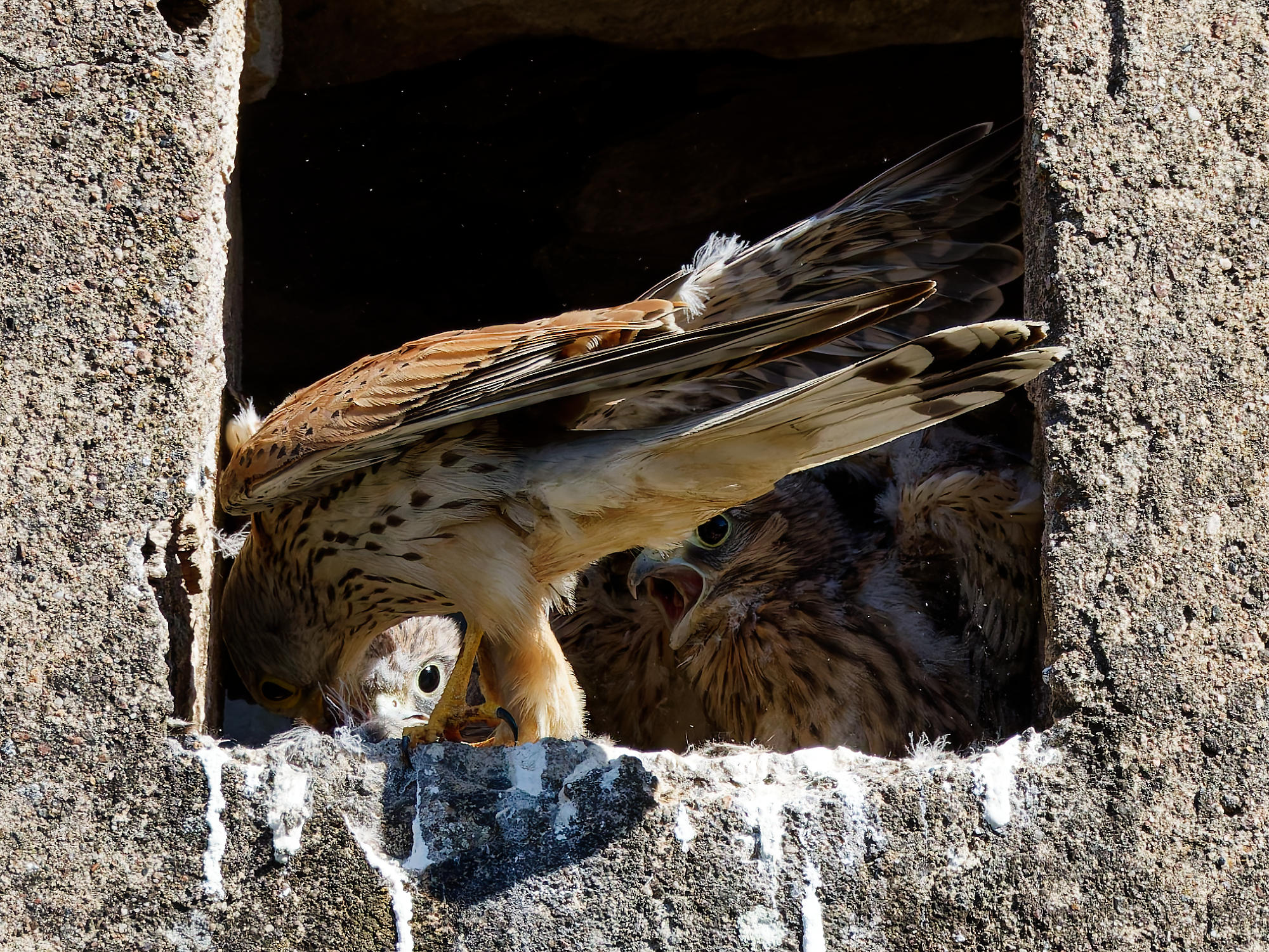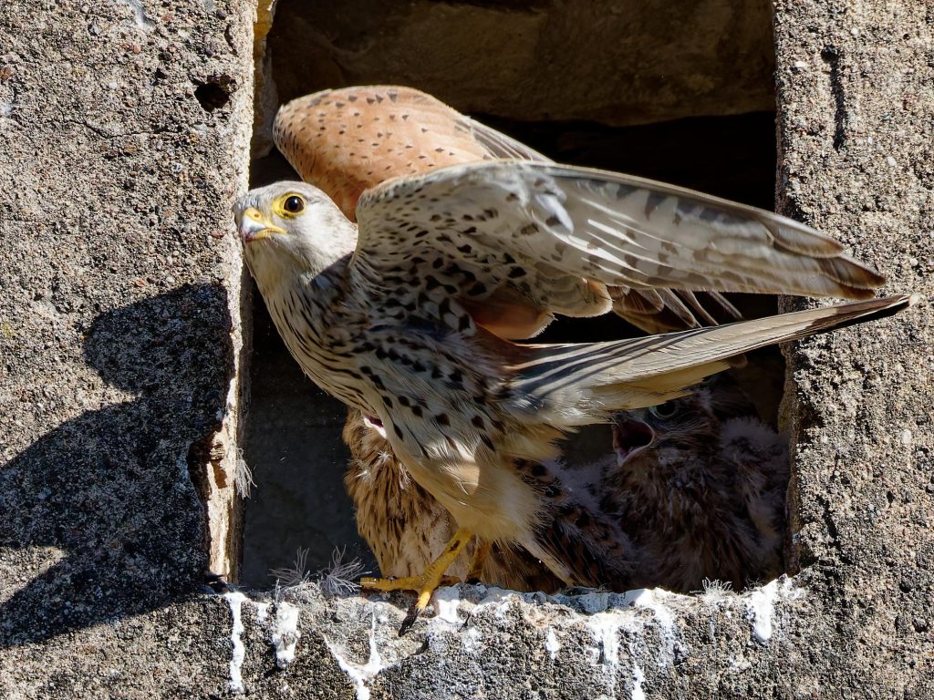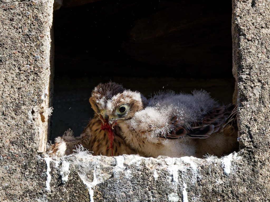 Le lendemain de notre première visite, les cinq jeunes faucons sont toujours là, un peu moins duveteux et le bec grand ouvert. Il ne reste plus grand-chose à grignoter ! Quatre jours plus tard, ils ont une belle carrure, et […]