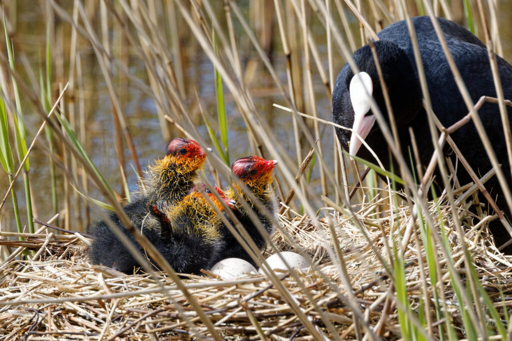 Les jeunes peuvent nager dès l’éclosion, mais passent ici l’essentiel de peur premier jour sur le nid,