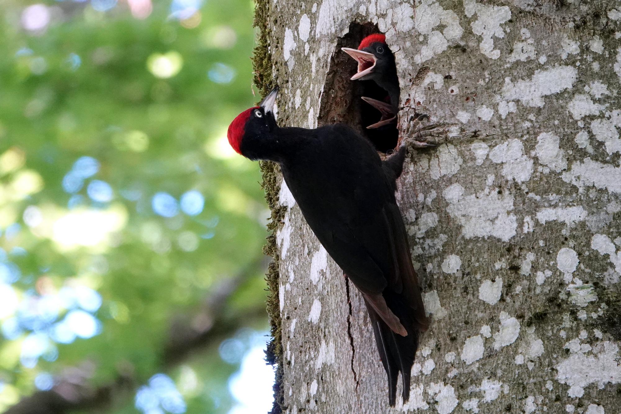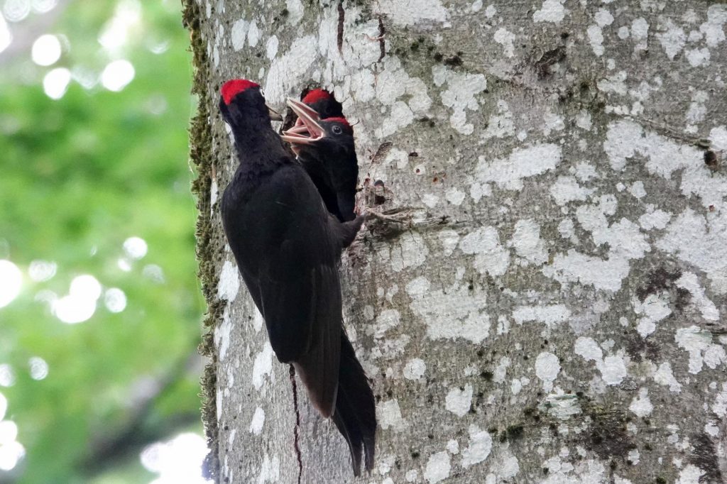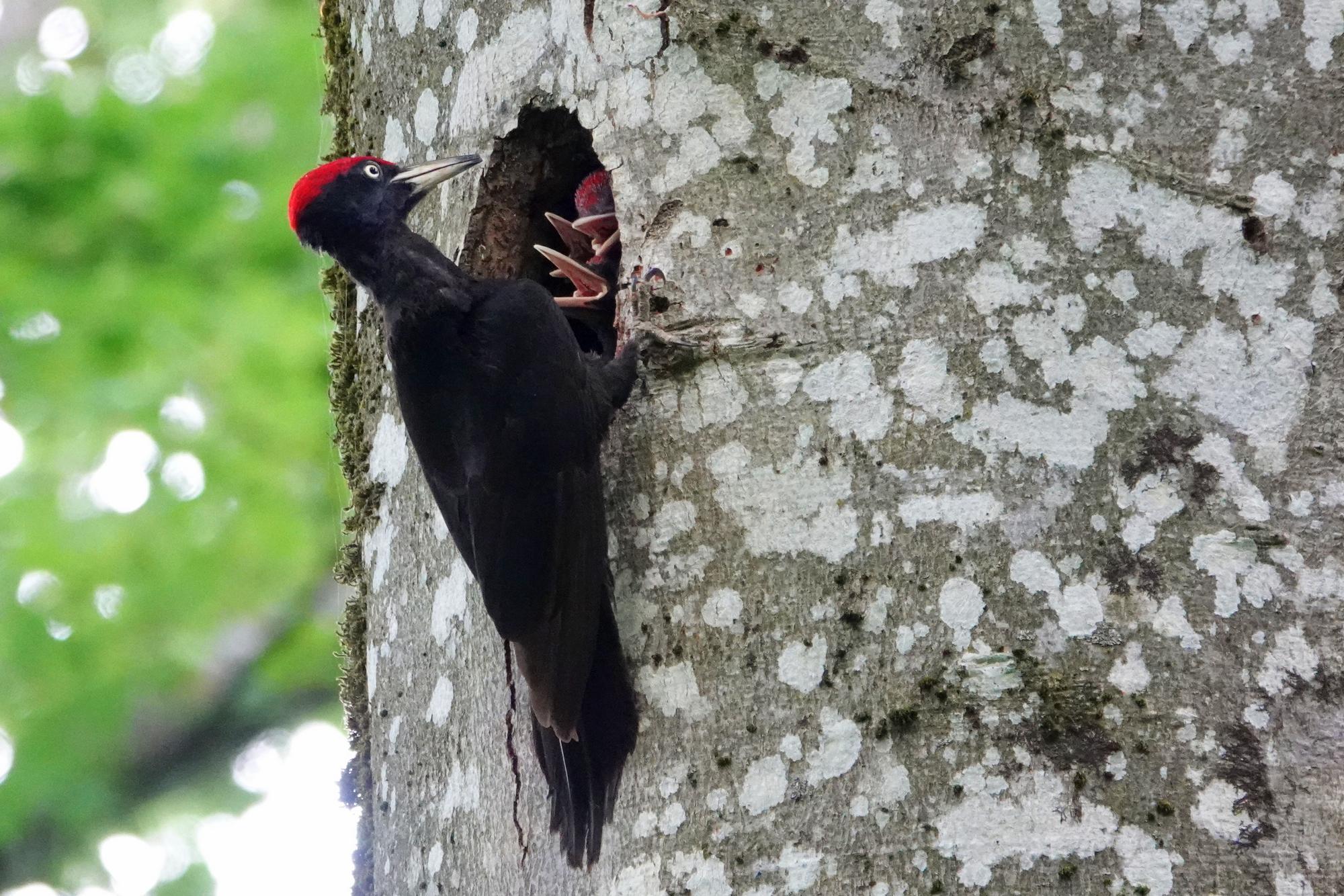 C’est le nid d’un pic noir, très furtif, que je n’avais pu voir que très ponctuellement. Me voilà donc installé au bon endroit par Bruno, et bien camouflé pour ne pas être vu.