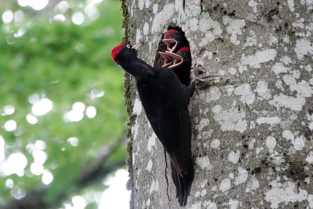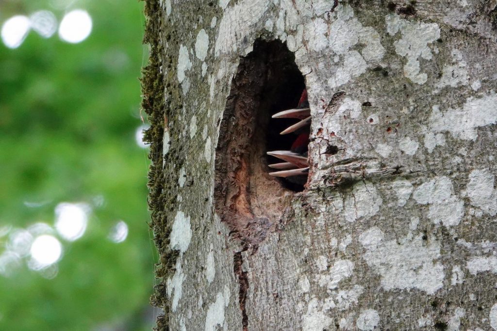 Bruno, un passionné de nature et de photo d’un village voisin, m’a fait ce jour-là le grand plaisir de m’emmener au fond de la forêt qu’il connaît bien pour voir un nid particulier, duquel dépassent ces petits becs.