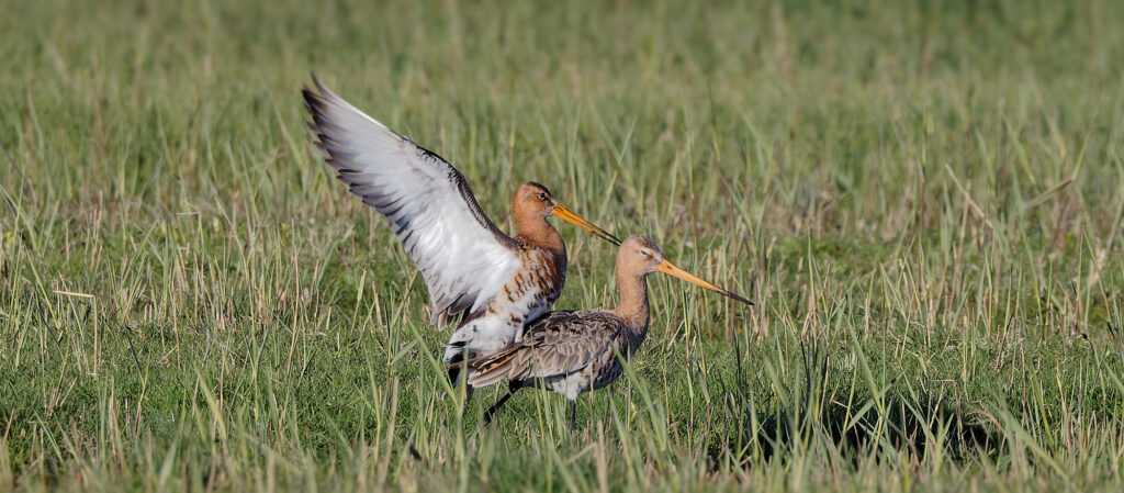 Les barges à queue noire passent beaucoup de temps en bordure des étangs,