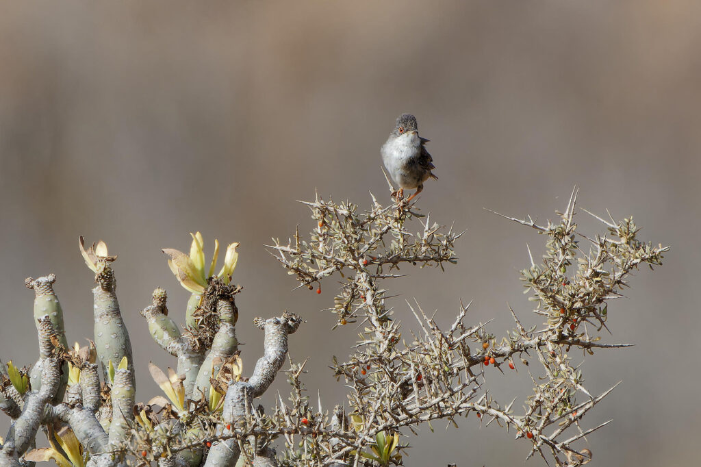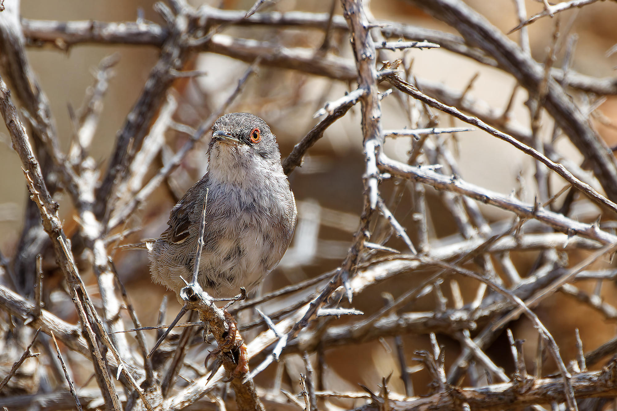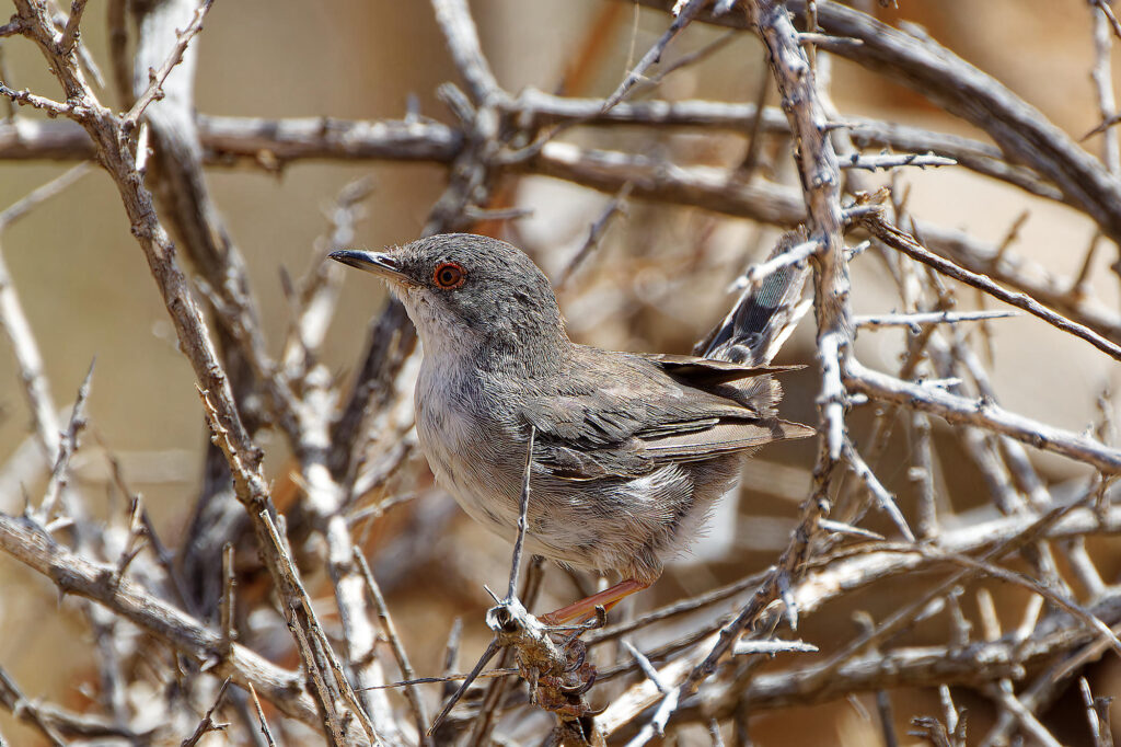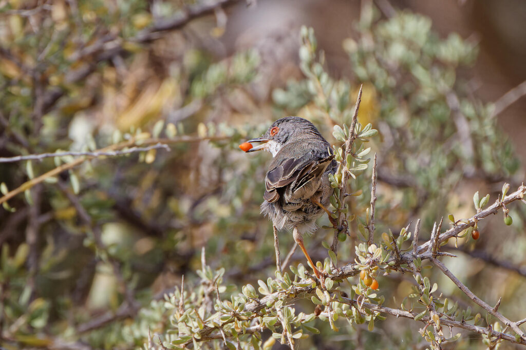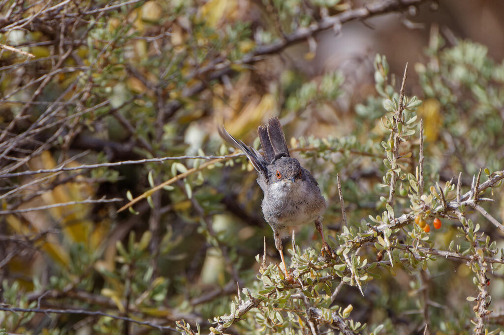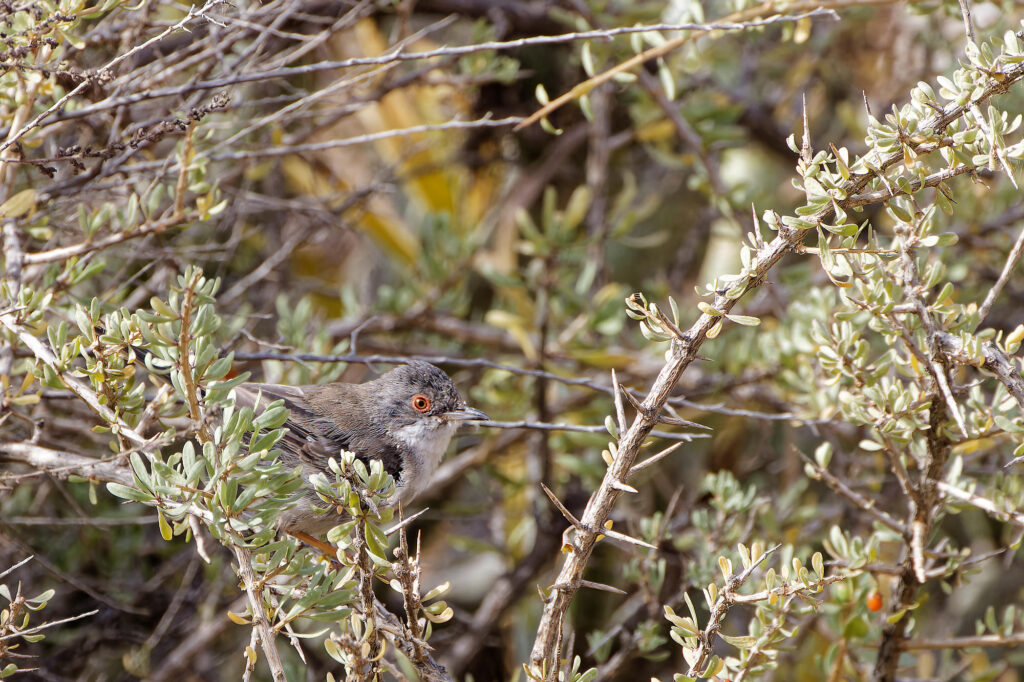 Voici madame fauvette mélanocéphale. Nous l’avions entrevue l’année dernière, mais c’est monsieur qui était à l’honneur avec sa belle calotte noire.