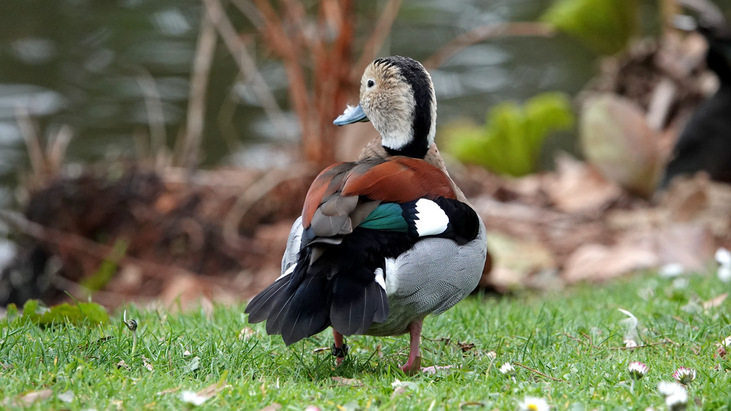 Portrait de monsieur canard à collier noir, qui compte parmi les locataires du jardin des plantes, à Nantes. Ce beau canard à la crête noire et aux plumes chamarrées vit à l’état sauvage en Amérique latine. C’est un petit canard [...]