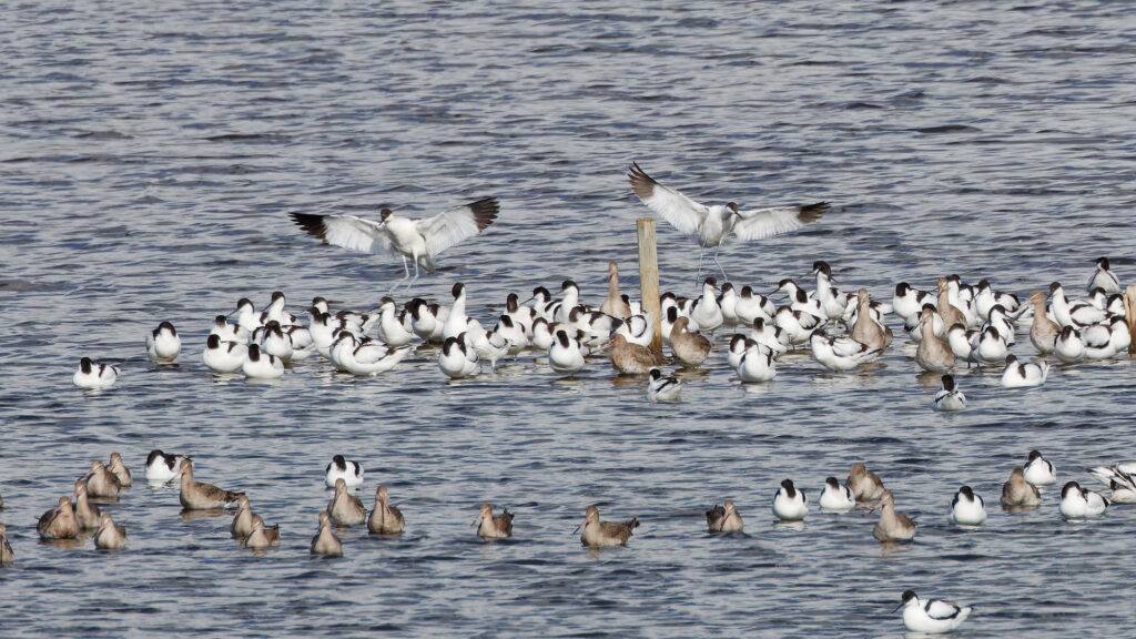 Des avocettes plus tranquilles, sur un lopin de terre plus loin.