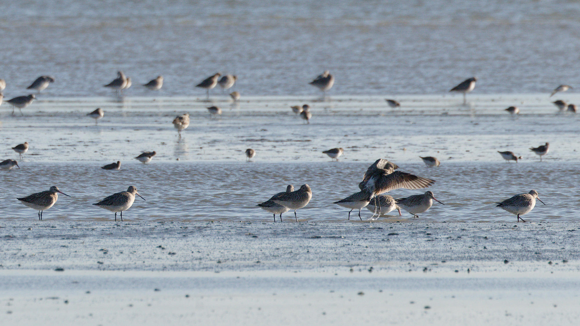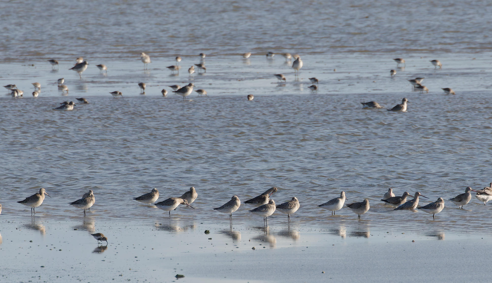 pendant que les barges rousses moins rousses commencent à profiter de la marée qui s’en va,