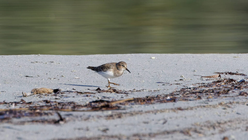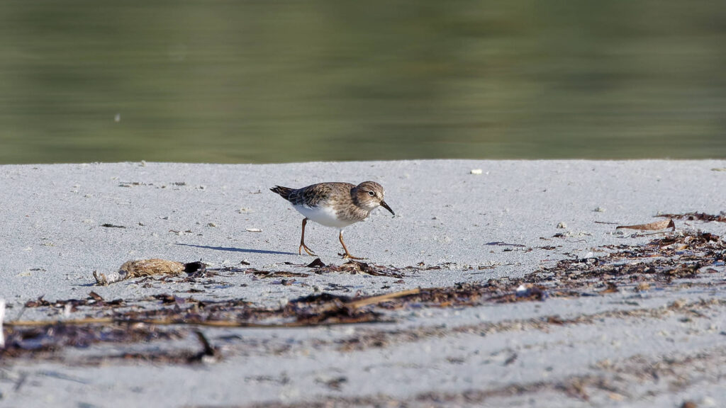 et enfin ce petit Bécasseau de Temminck, nouvel entrant également, qui partage brièvement la plage des gravelots.