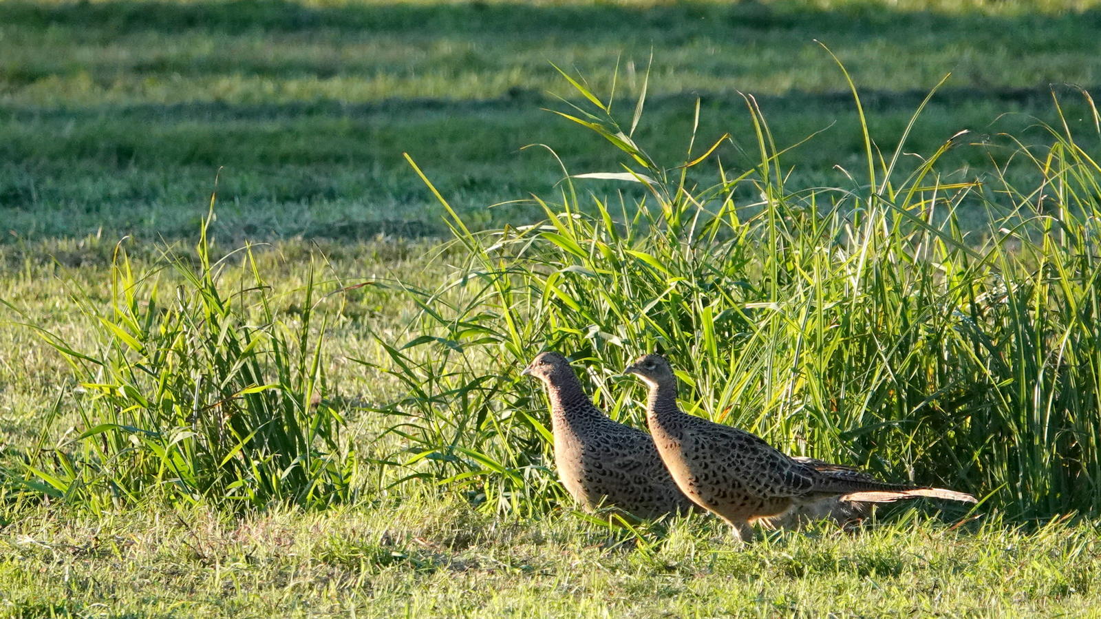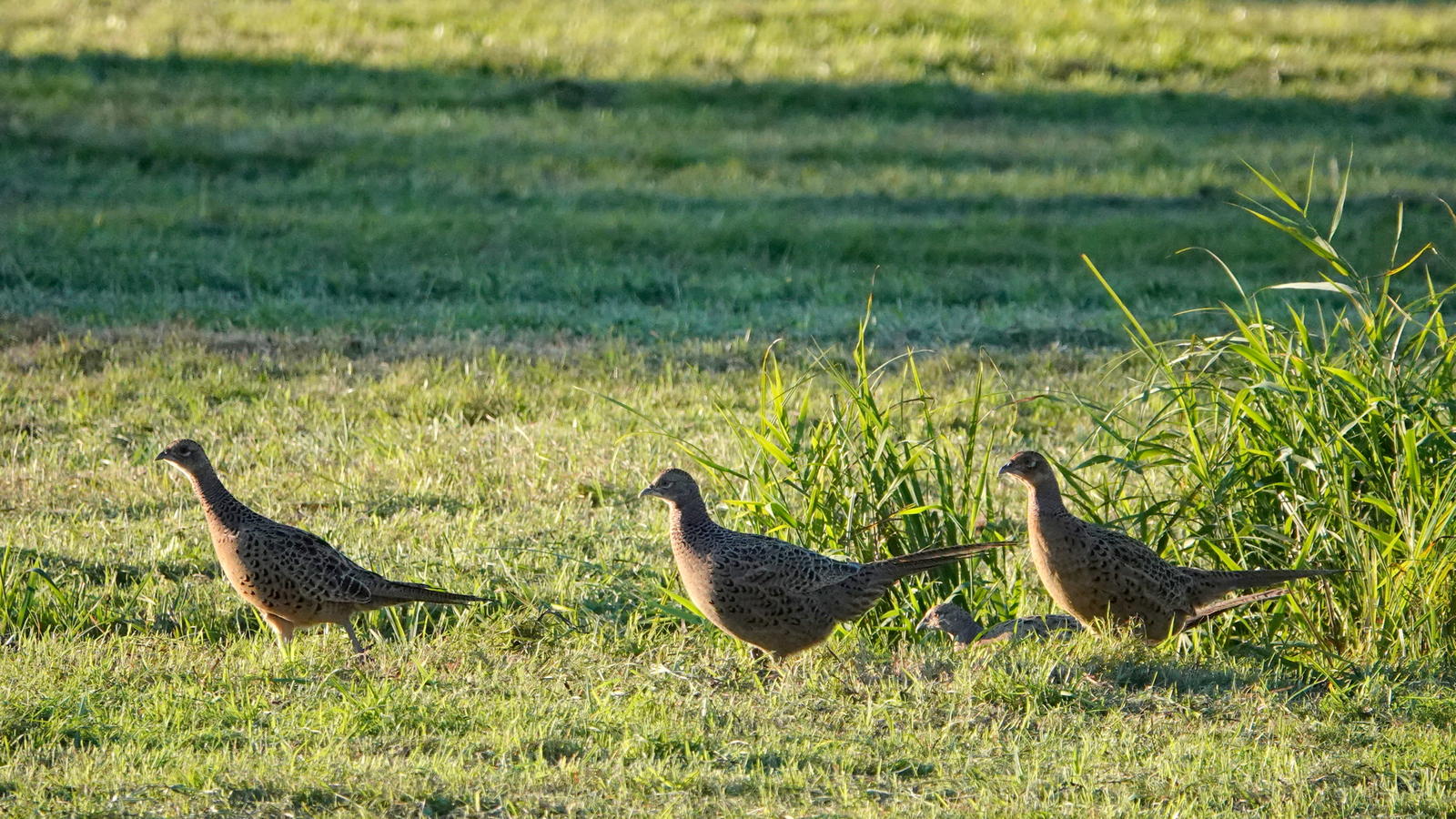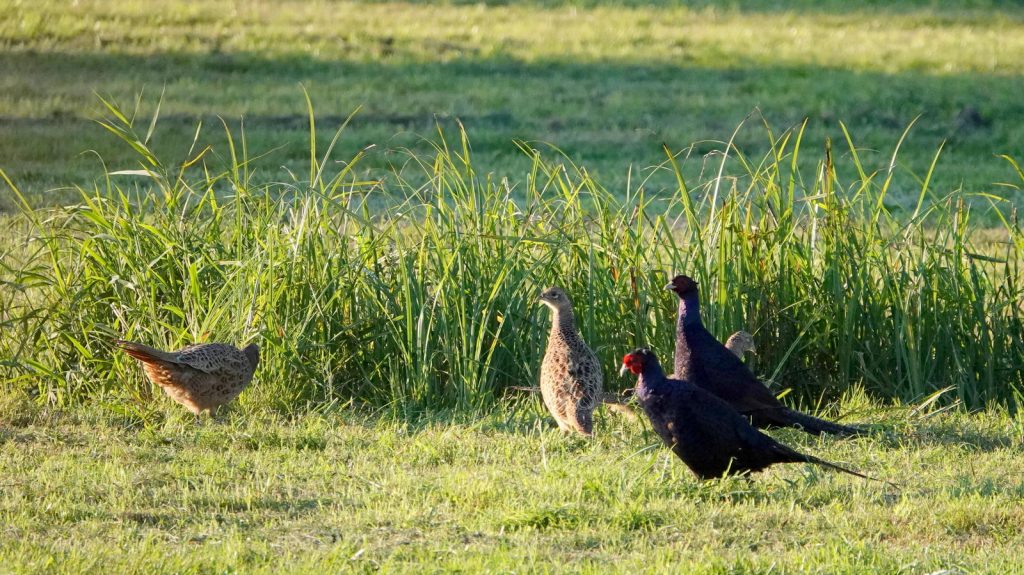 Une fois le contre-jour levé, il reste quand même deux faisans noirs, avec du rouge sur la tête. Il s’agit d’une variante « obscure » des faisans de Colchide, issue de l’élevage.