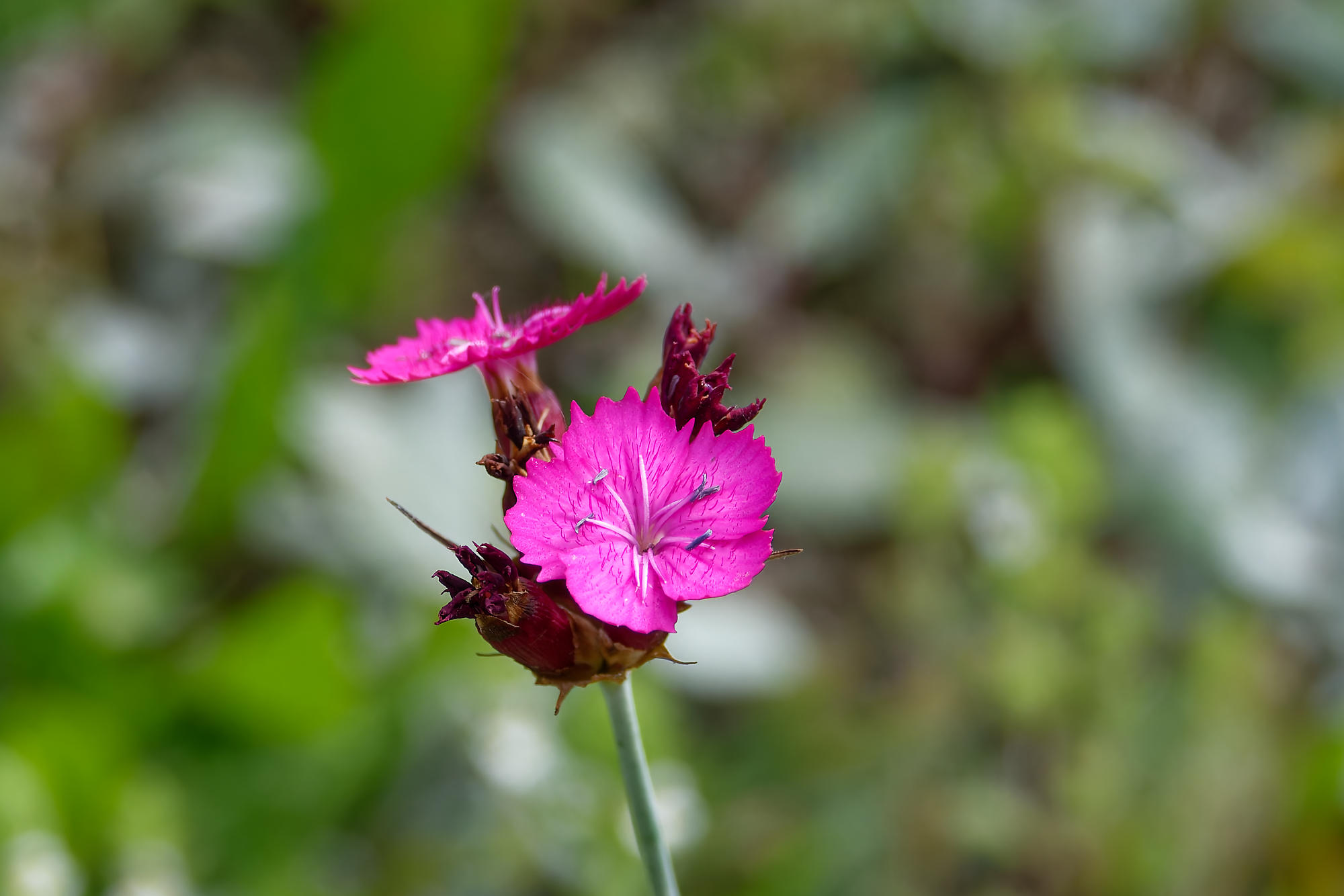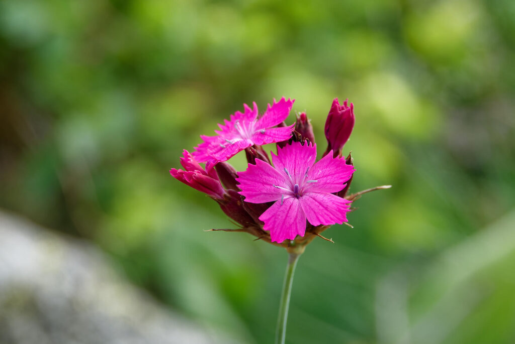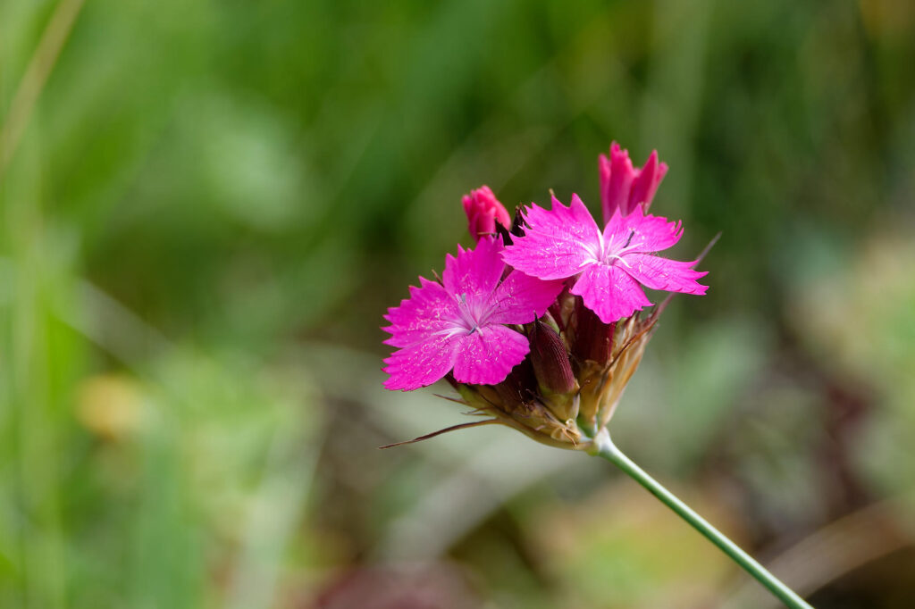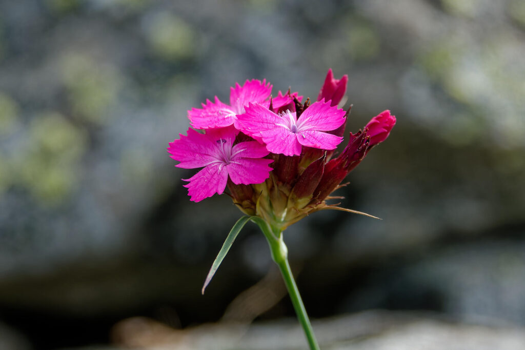 Les œillets des Chartreux brillent au soleil avec leur couleur vive,