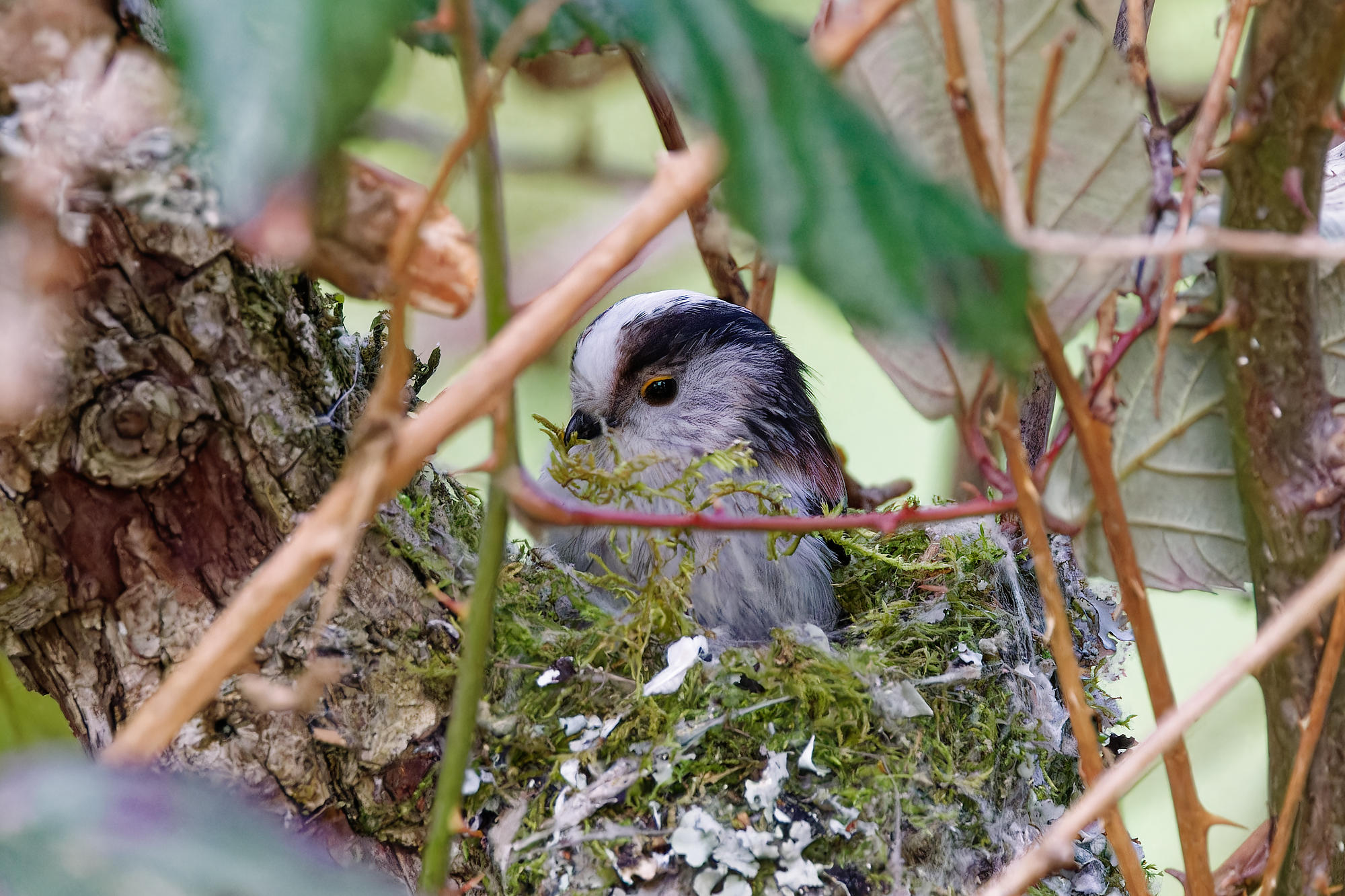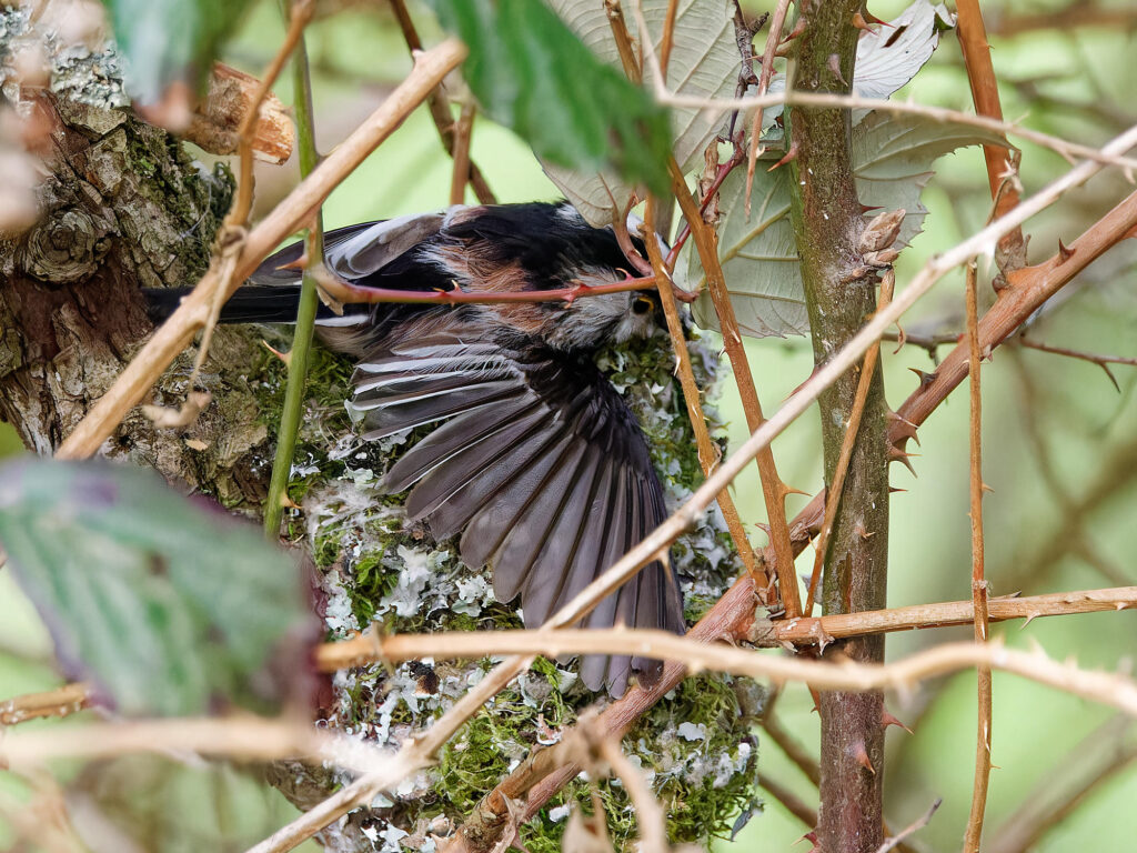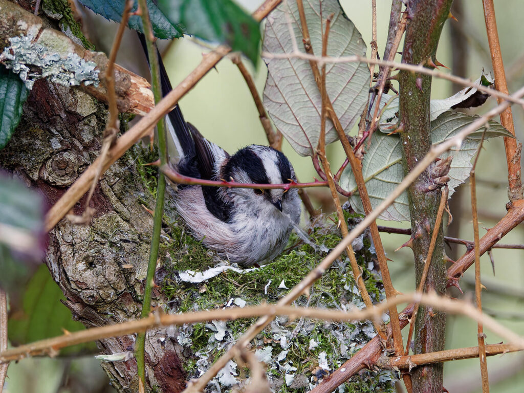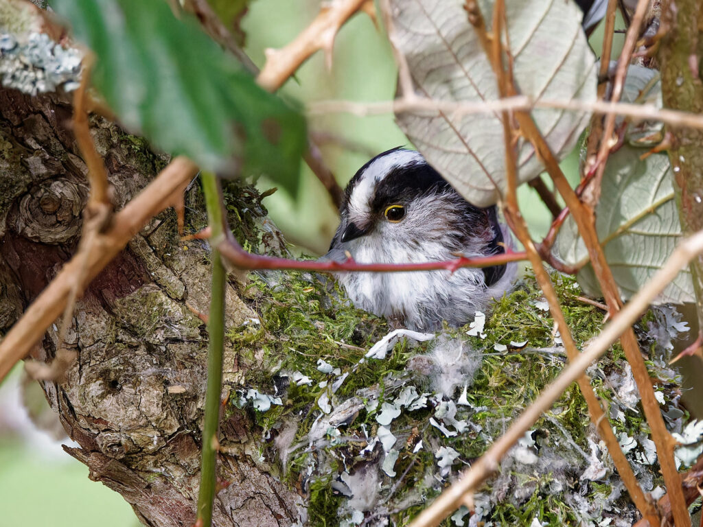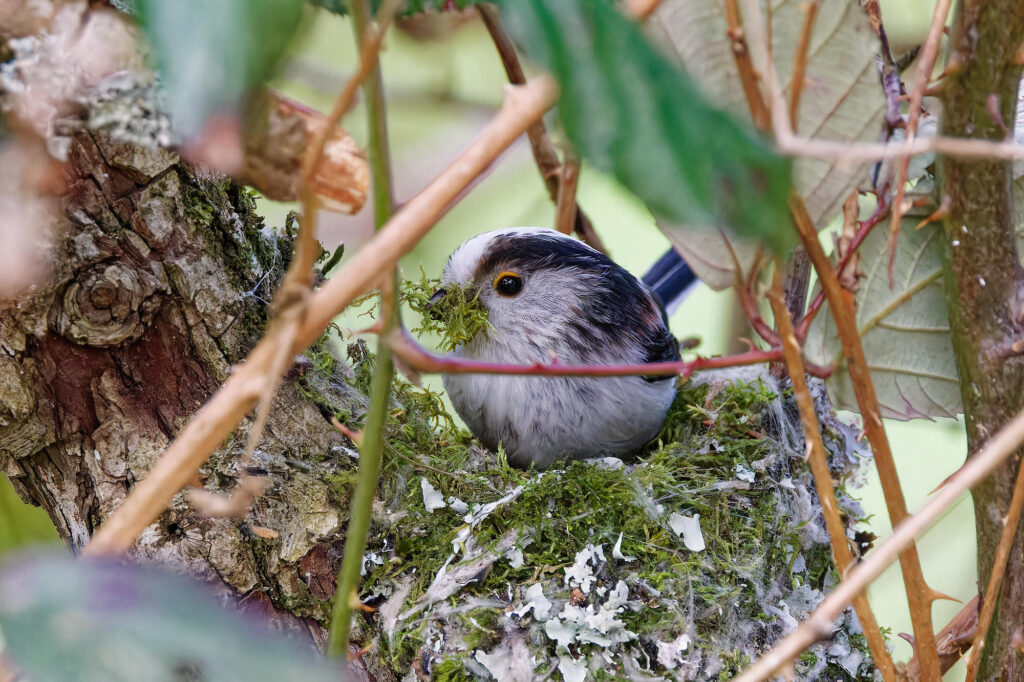 Un couple de mésanges à longue-queue a entrepris la construction d’un nid.