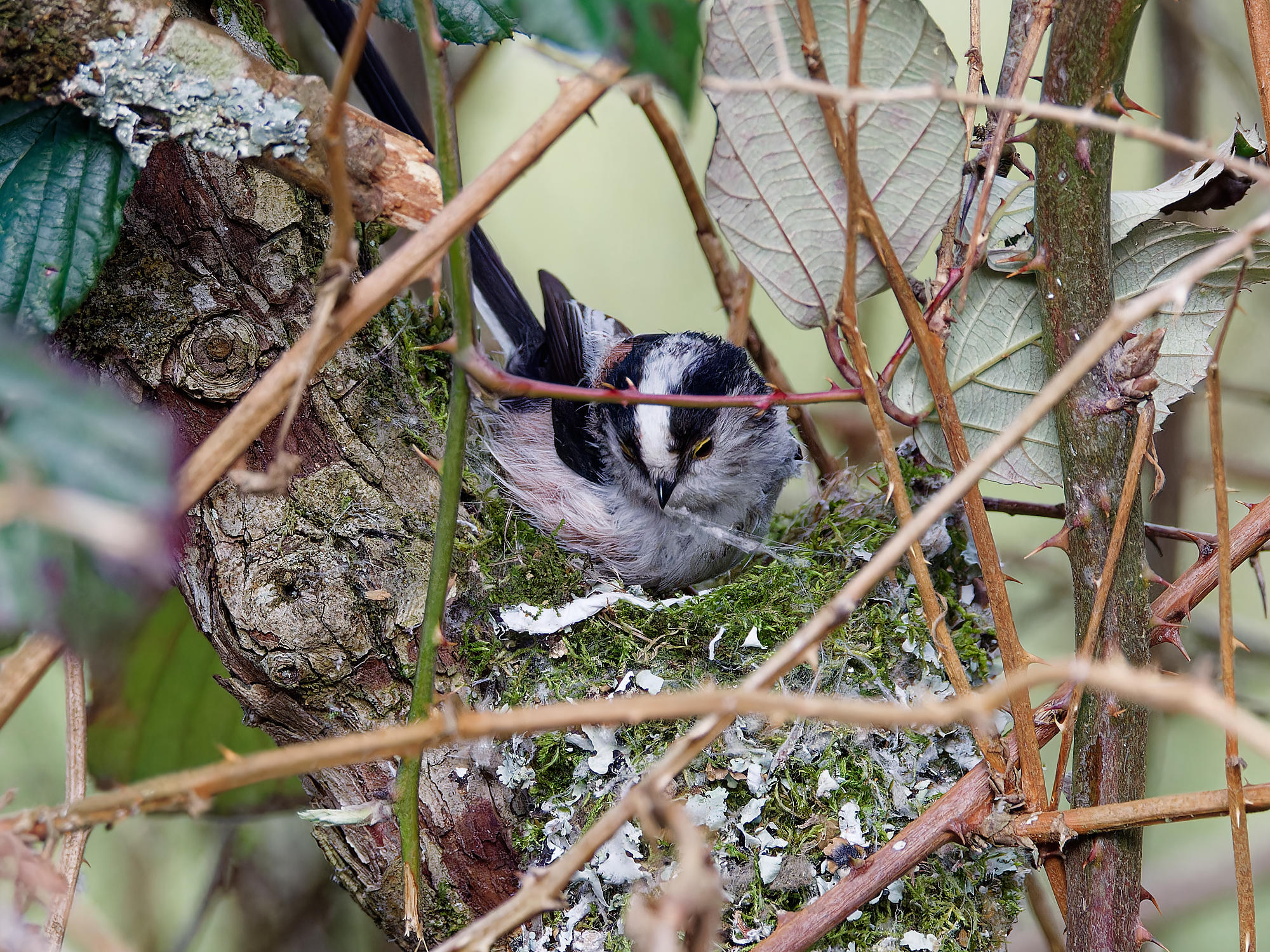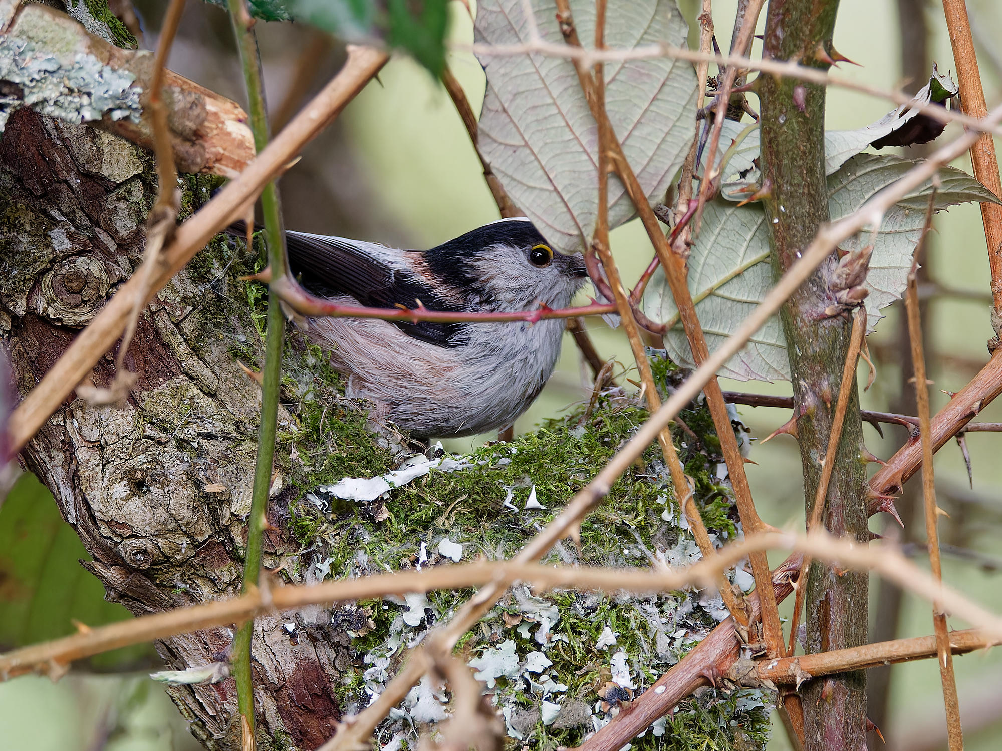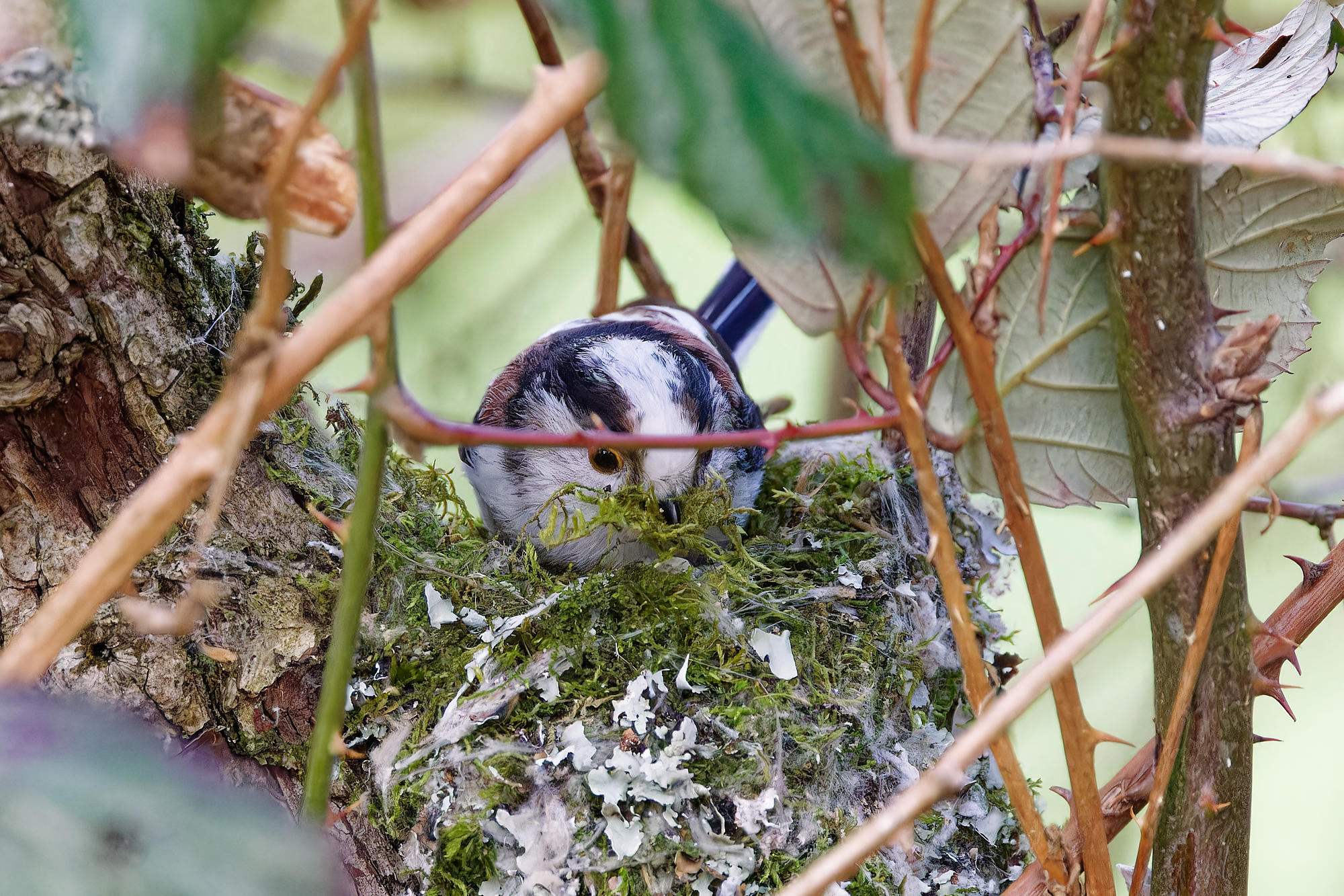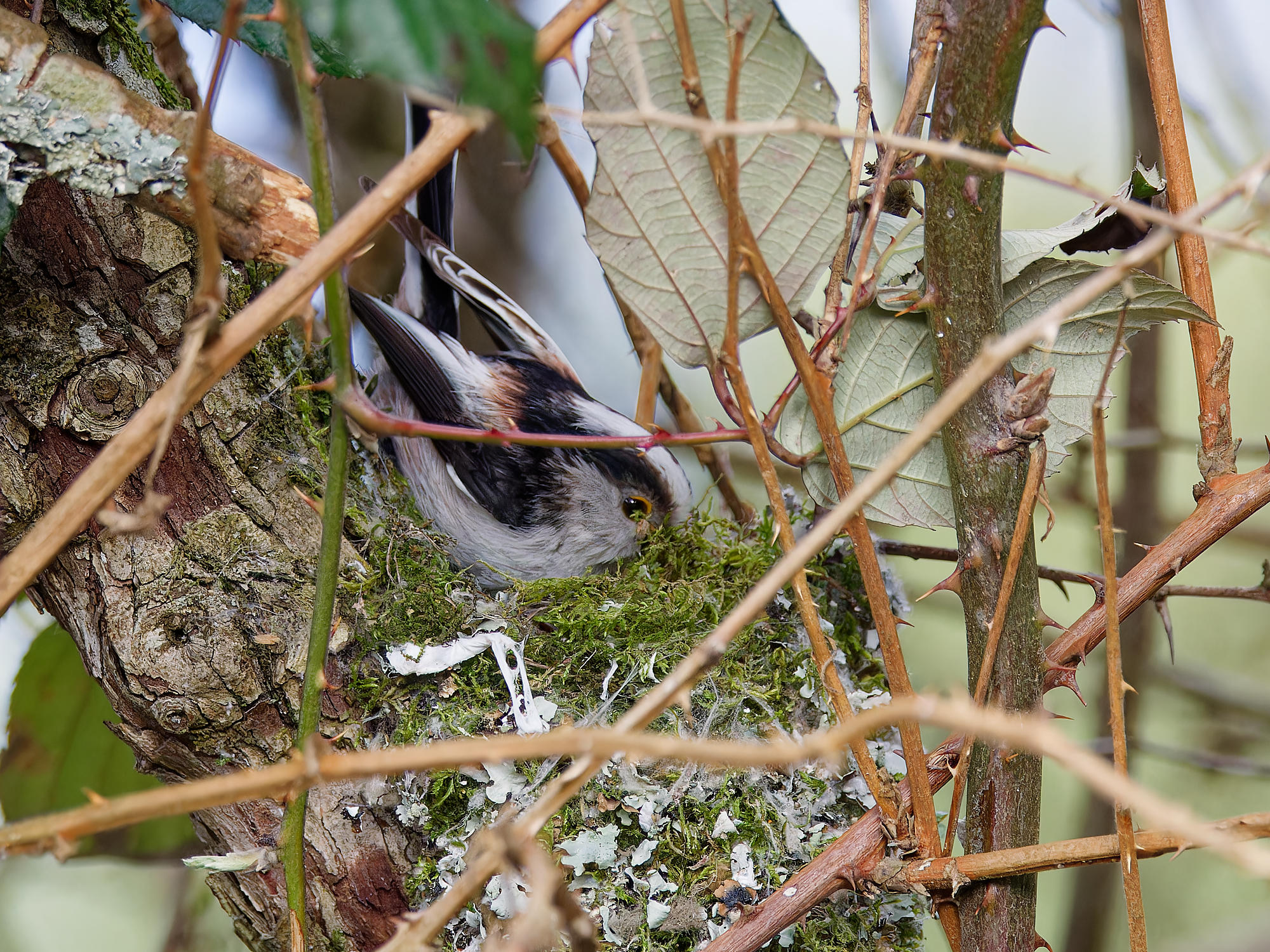 Un couple de mésanges à longue-queue a entrepris la construction d’un nid.