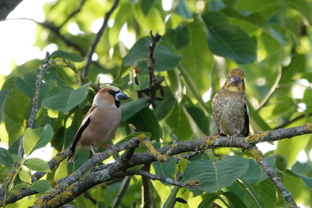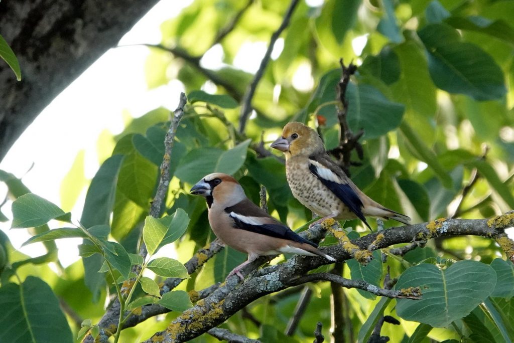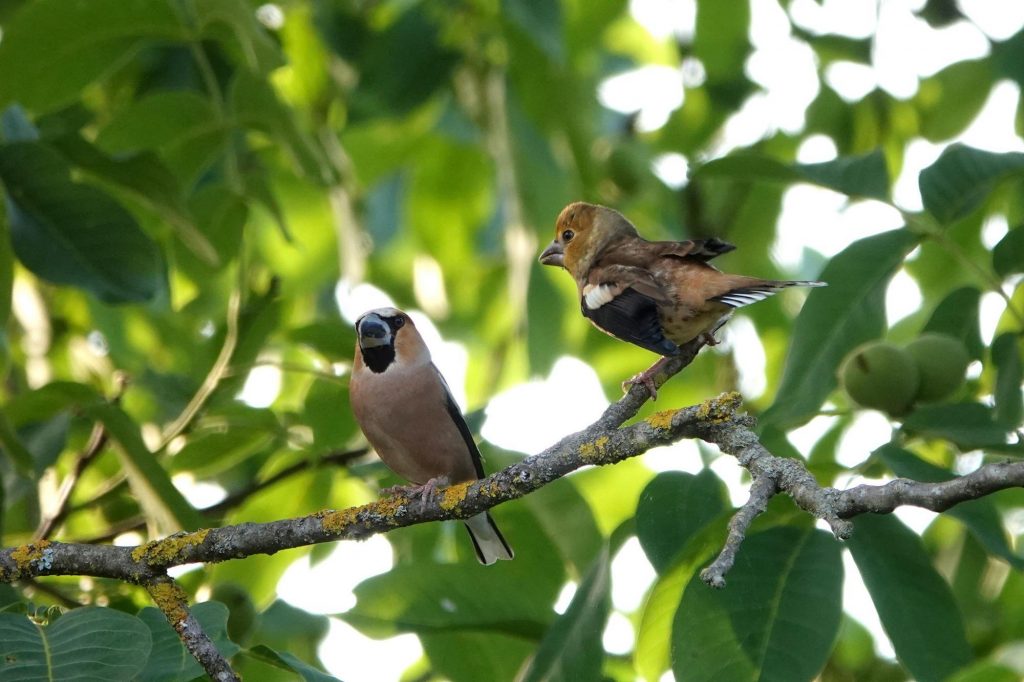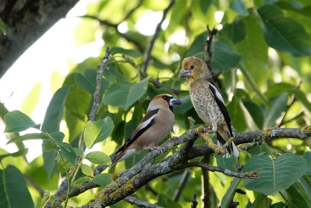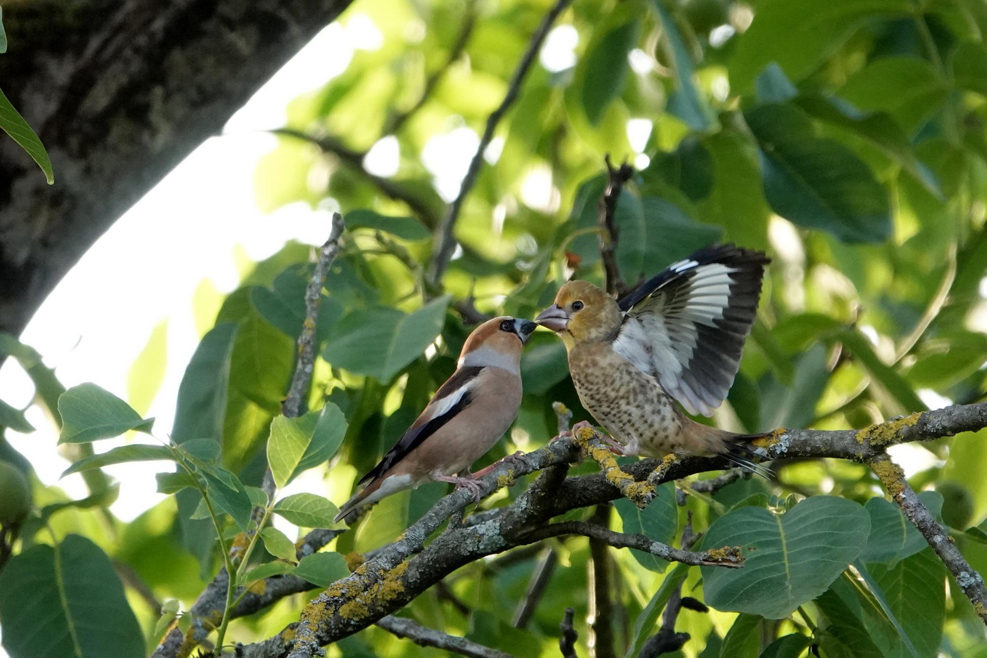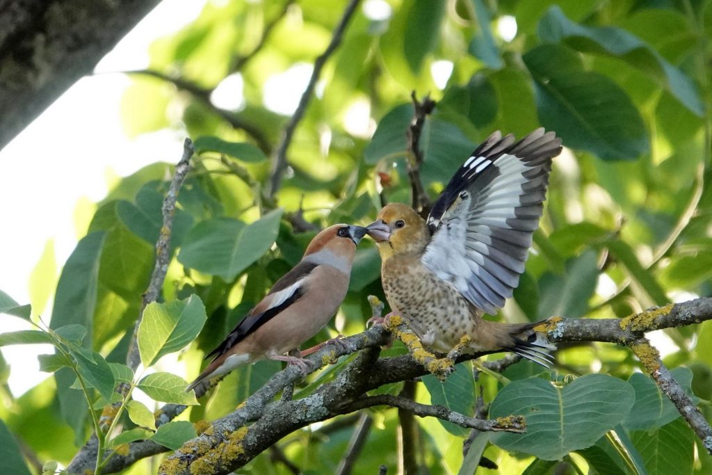 Savez-vous comment les jeunes gros-becs apprennent à voler ? C’est un secret très bien gardé que je vous dévoile aujourd’hui, au travers des feuilles du noyer.