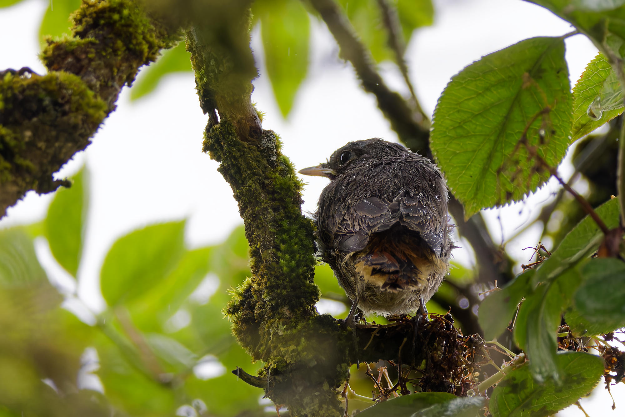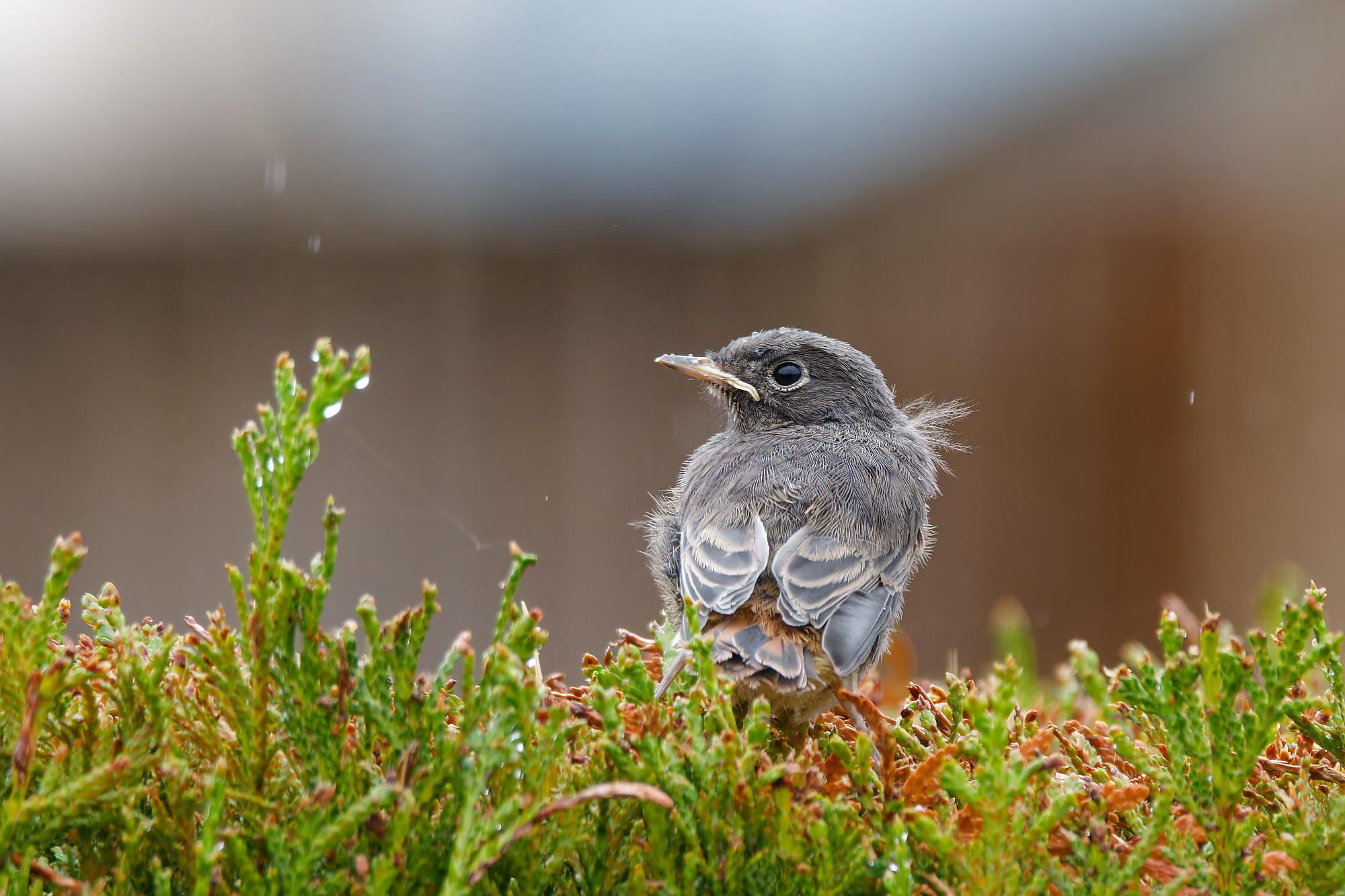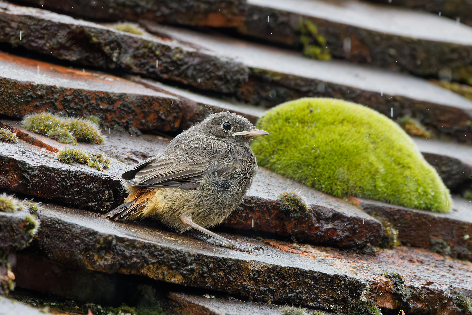 Les jeunes découvrent les gouttes d’eau qui ruissèlent sur leurs plumes,