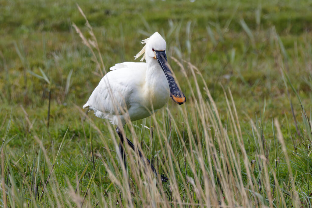 Avec ses plumes ornementales au vent et le bout de sa spatule orangé,