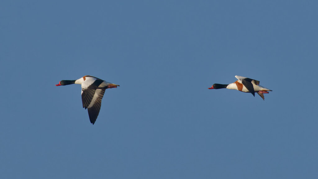 ou en quintette, les Tadornes de Belon sont bien plus nombreux en bord de mer qu’en Franche-Comté.