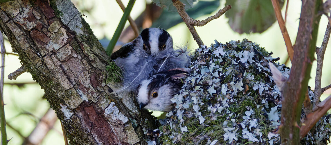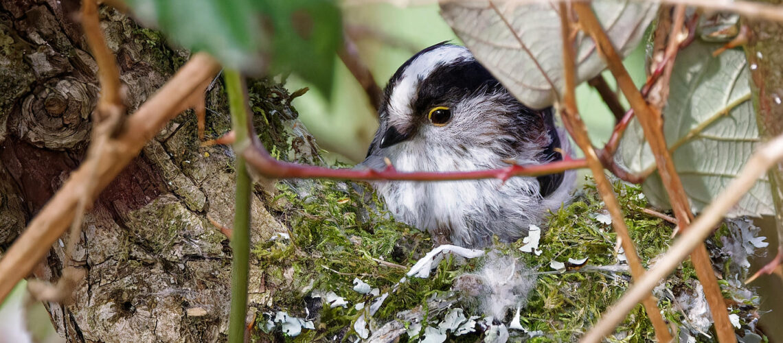 Alors que les petites mésanges à longue-queue sont en train de couver, retour en image sur la dernière étape de fabrication du nid. Une fois la paroi extérieure de mousse et de toile terminée, le nid est tapissé de plumes […]