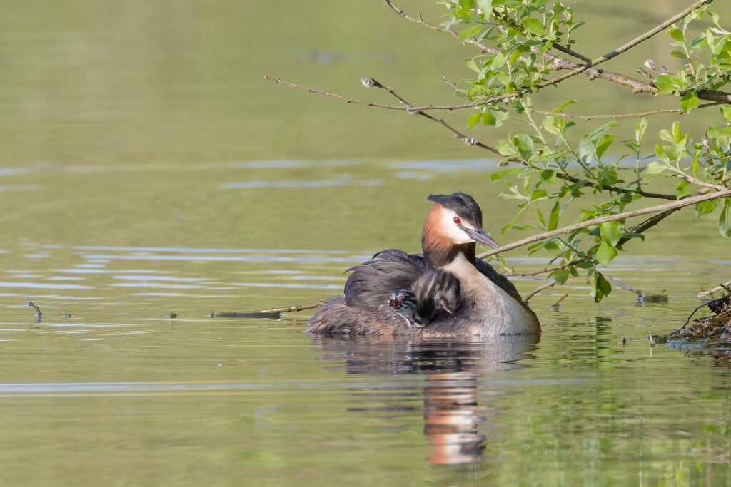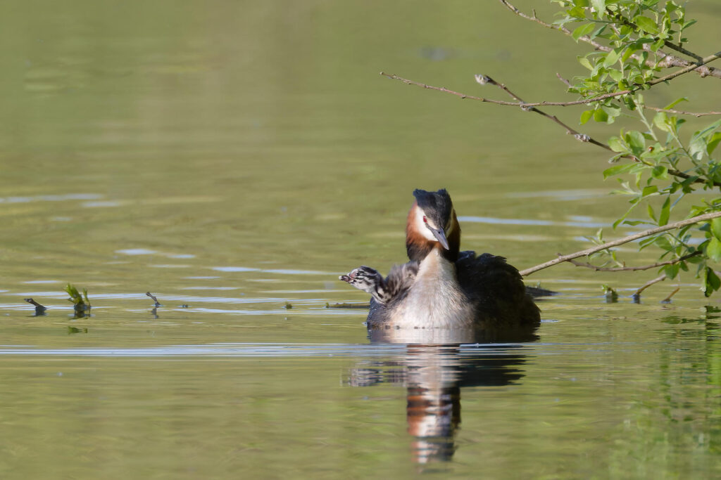 Une petite tête qui découvre le monde de l’étang quand arrive l’heure de la relève entre parents.